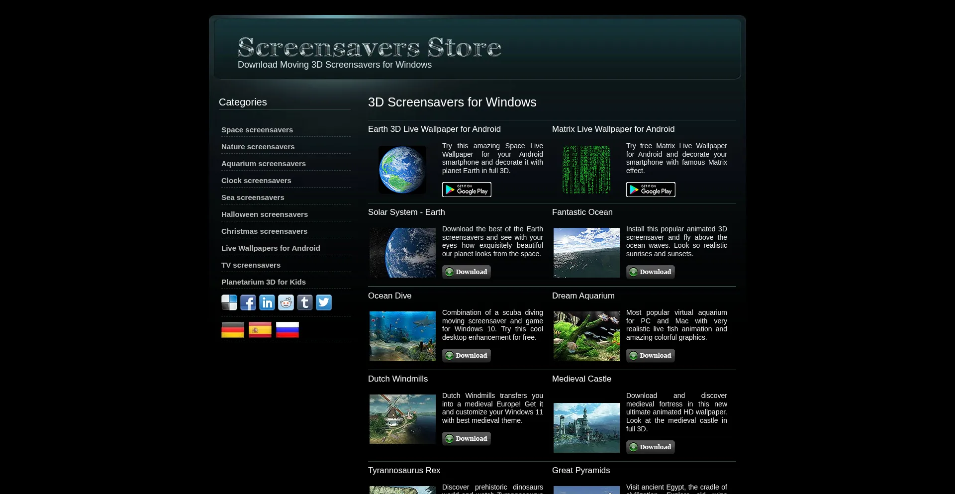 The screensavers-store.com website offers a mobile application for Android devices, indicating expanded platform presence beyond web-based services.