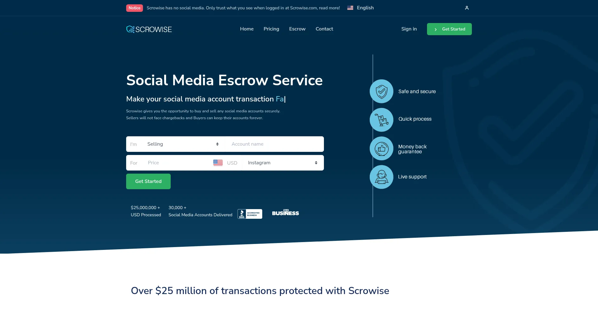 Social Media Escrow Service for Instagram, Youtube, TikTok & etc | Scrowise