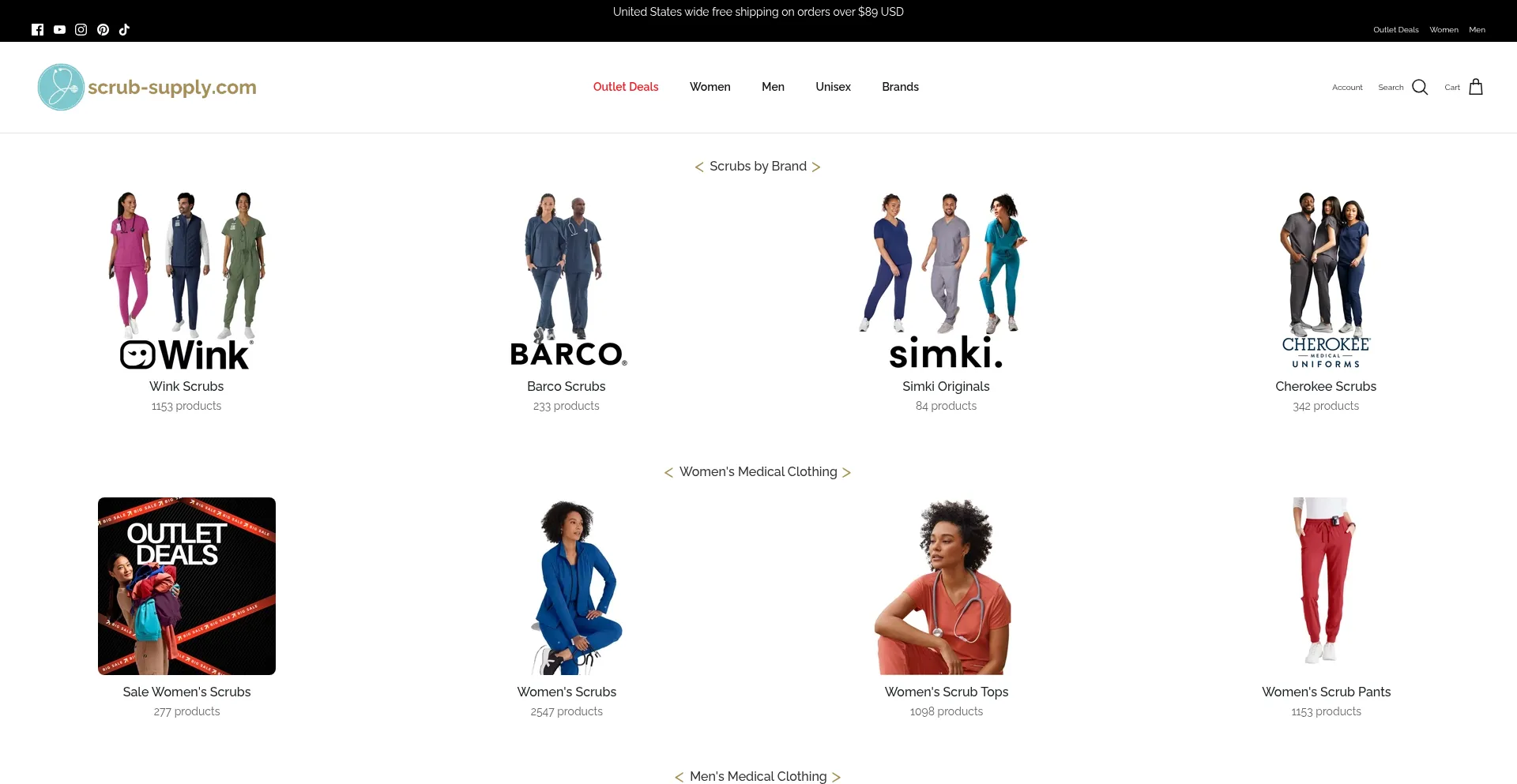 The scrub-supply.com website utilizes free e-commerce platform solutions, which may indicate cost-conscious operations but could also suggest limitations in security features, customer support, or advanced functionality compared to enterprise-grade solutions.