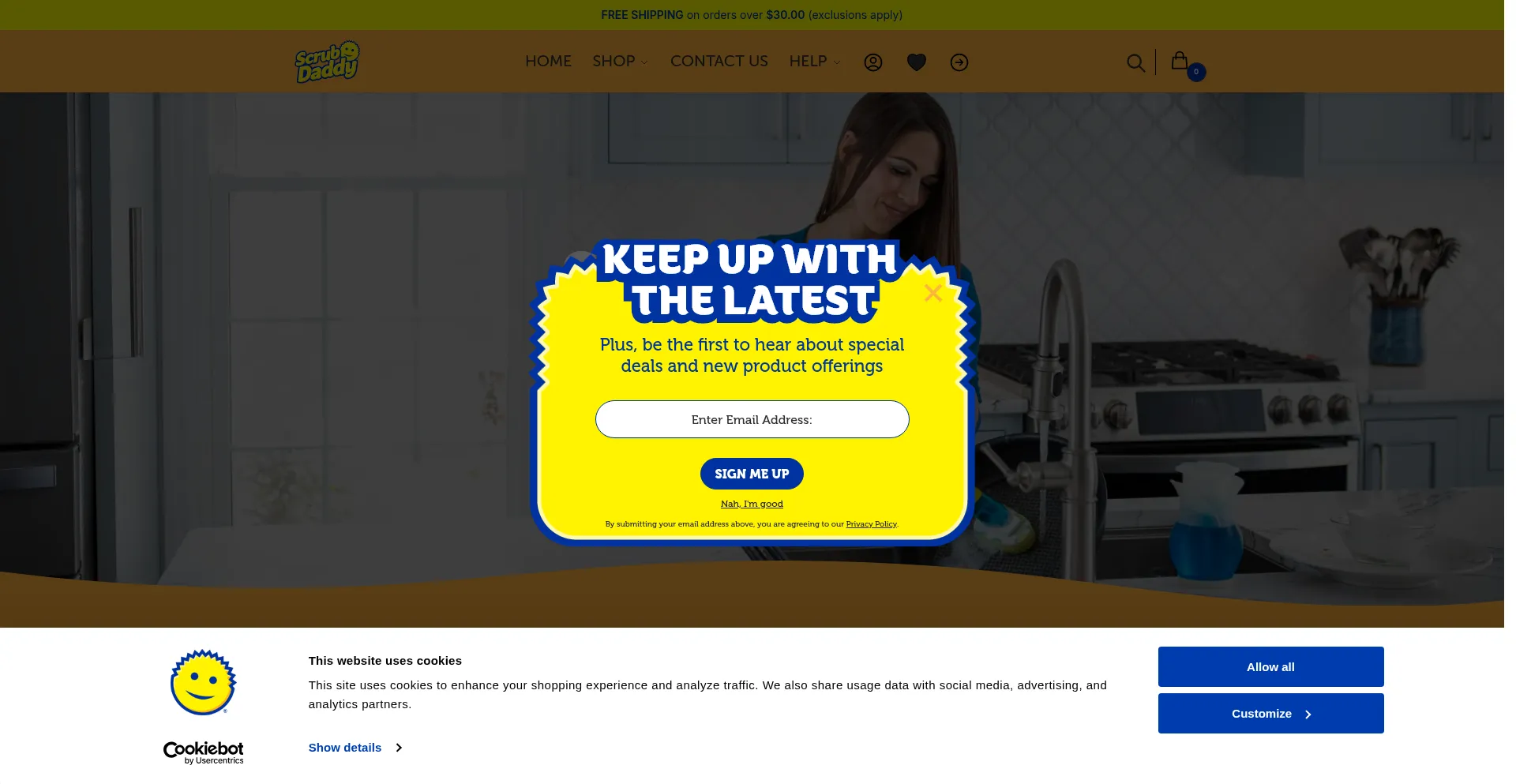 The website implements cookie consent mechanisms in compliance with privacy regulations such as GDPR or CCPA. This demonstrates that scrubdaddy.com adheres to data protection standards and provides users with control over personal data collection practices.