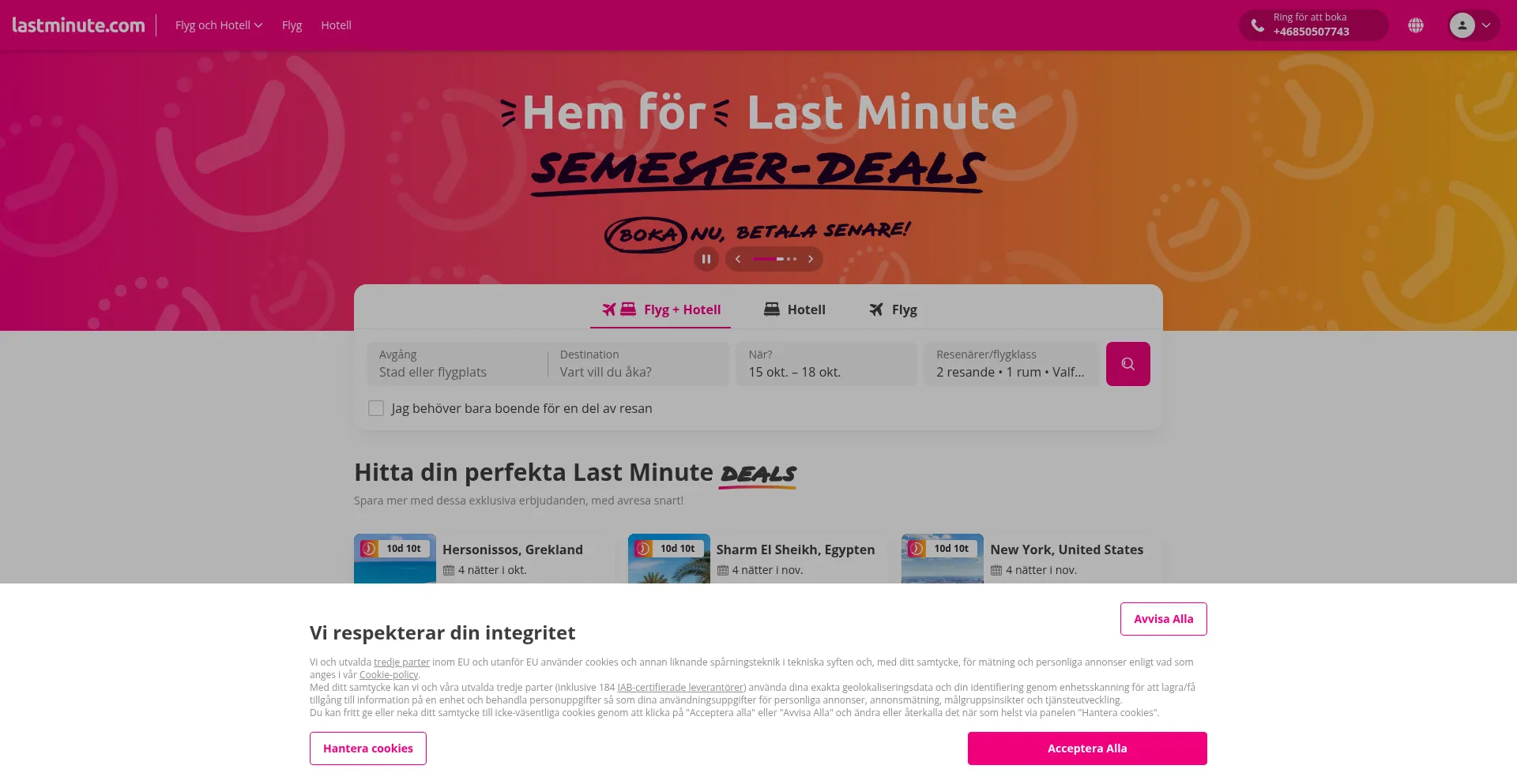 Planera din nästa resa med se.lastminute.com. Vi erbjuder fantastiska semestererbjudanden. Bra erbjudanden på hotell, flyg, resor och weekendresor. Boka online och spara nu!