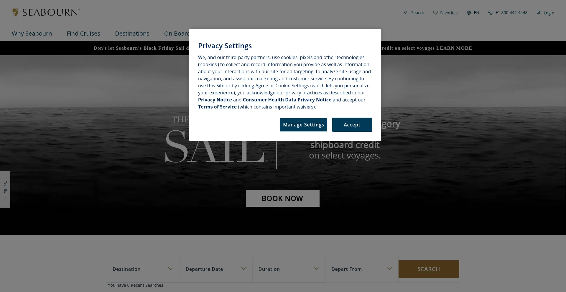 The website implements cookie consent mechanisms in compliance with privacy regulations such as GDPR or CCPA. This demonstrates that seabourn.com adheres to data protection standards and provides users with control over personal data collection practices.