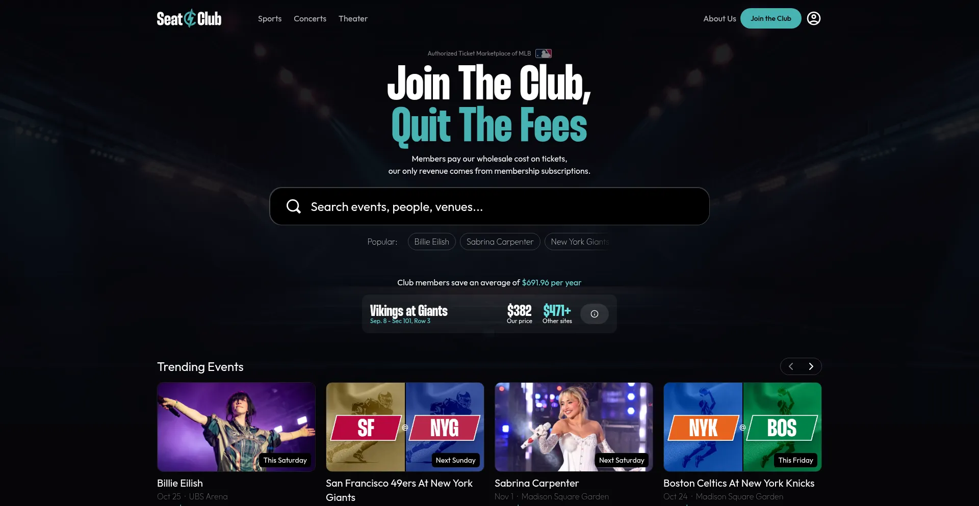 Buy cheap tickets with no fees to your favorite sports, concerts & theater from SeatClub. Fee free tickets are 100% guaranteed! Subscribe & save with SeatClub today!