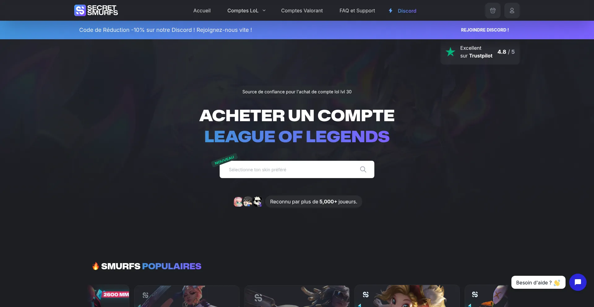 Acheter un compte LoL lvl 30 unranked à un prix abordable ! 100% français et livraison instantanée, Secret Smurfs fournis un support inégalé.