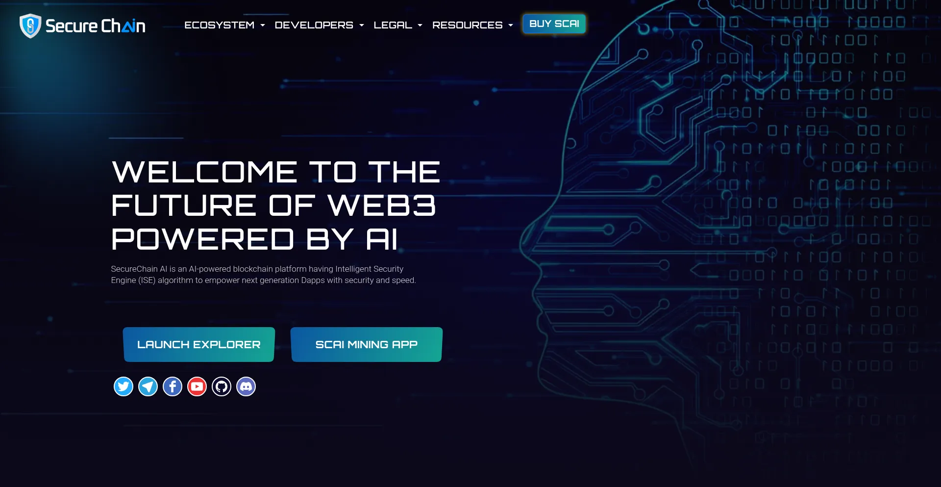 SecureChain AI is an AI-powered blockchain platform having Intelligent Security Engine (ISE) algorithm to empower next generation Dapps with security and speed.