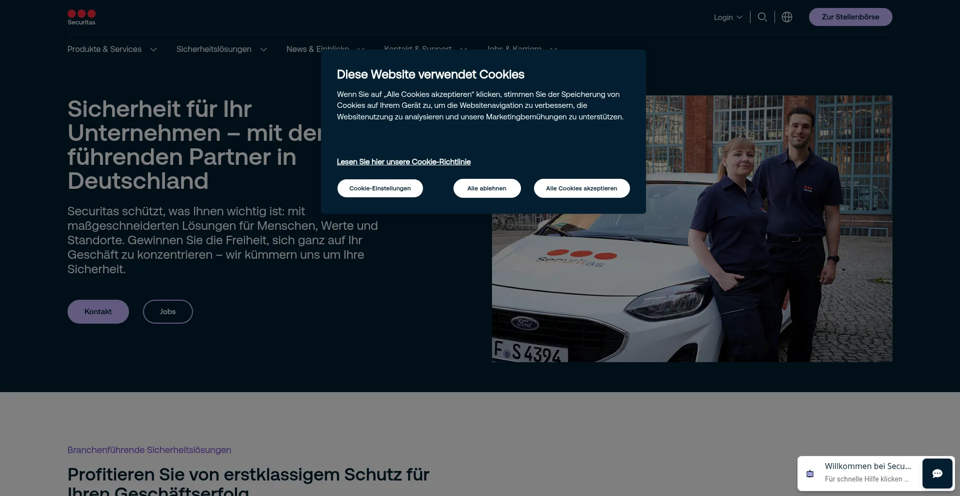 The website implements cookie consent mechanisms in compliance with privacy regulations such as GDPR or CCPA. This demonstrates that securitas.de adheres to data protection standards and provides users with control over personal data collection practices.