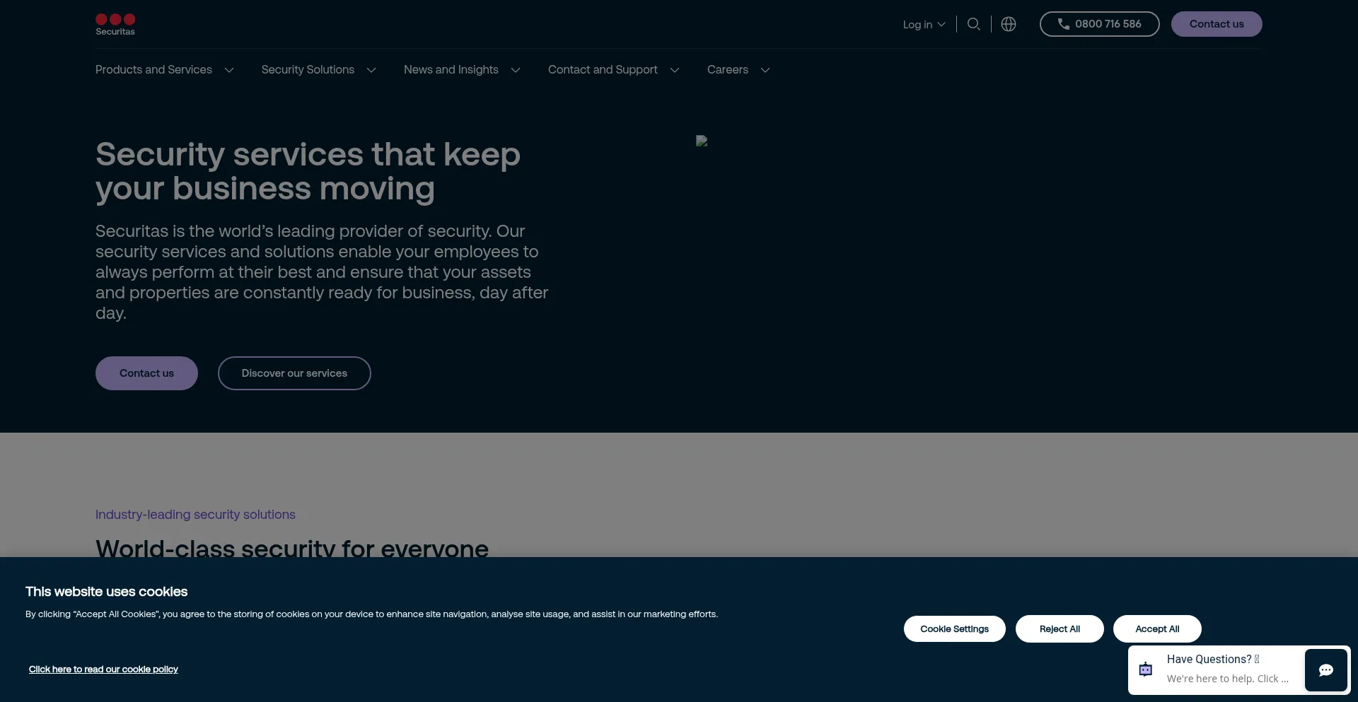 The website implements cookie consent mechanisms in compliance with privacy regulations such as GDPR or CCPA. This demonstrates that securitas.uk.com adheres to data protection standards and provides users with control over personal data collection practices.