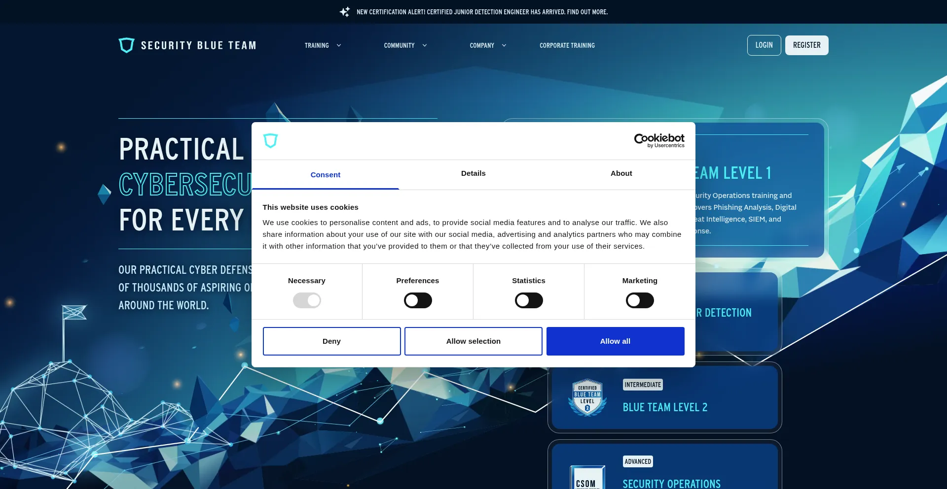 The website implements cookie consent mechanisms in compliance with privacy regulations such as GDPR or CCPA. This demonstrates that securityblue.team adheres to data protection standards and provides users with control over personal data collection practices.