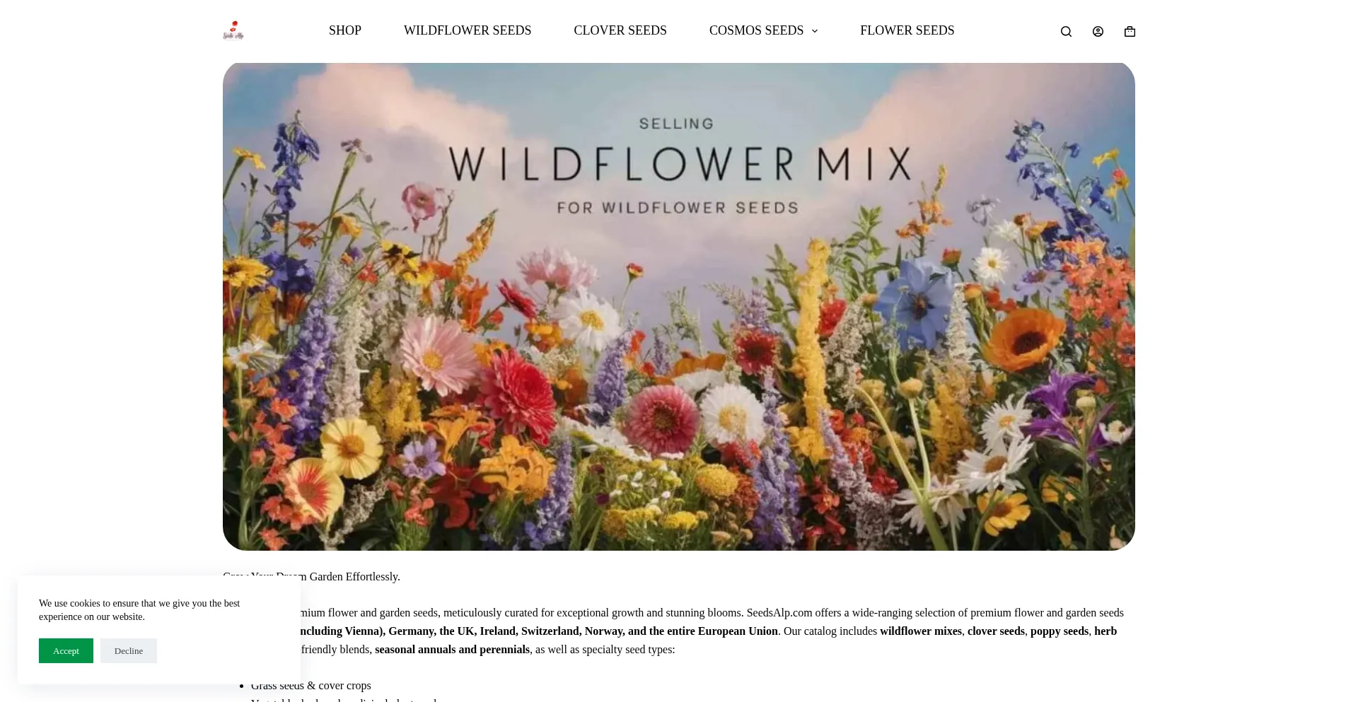 SeedsAlp: Online Flower Seeds Shop in Austria & UK. Buy Wildflower Seeds Bulk (1 kg–10 kg) red & white Clover Cosmos Cornflower. Free delivery EU, UK expert planting advice