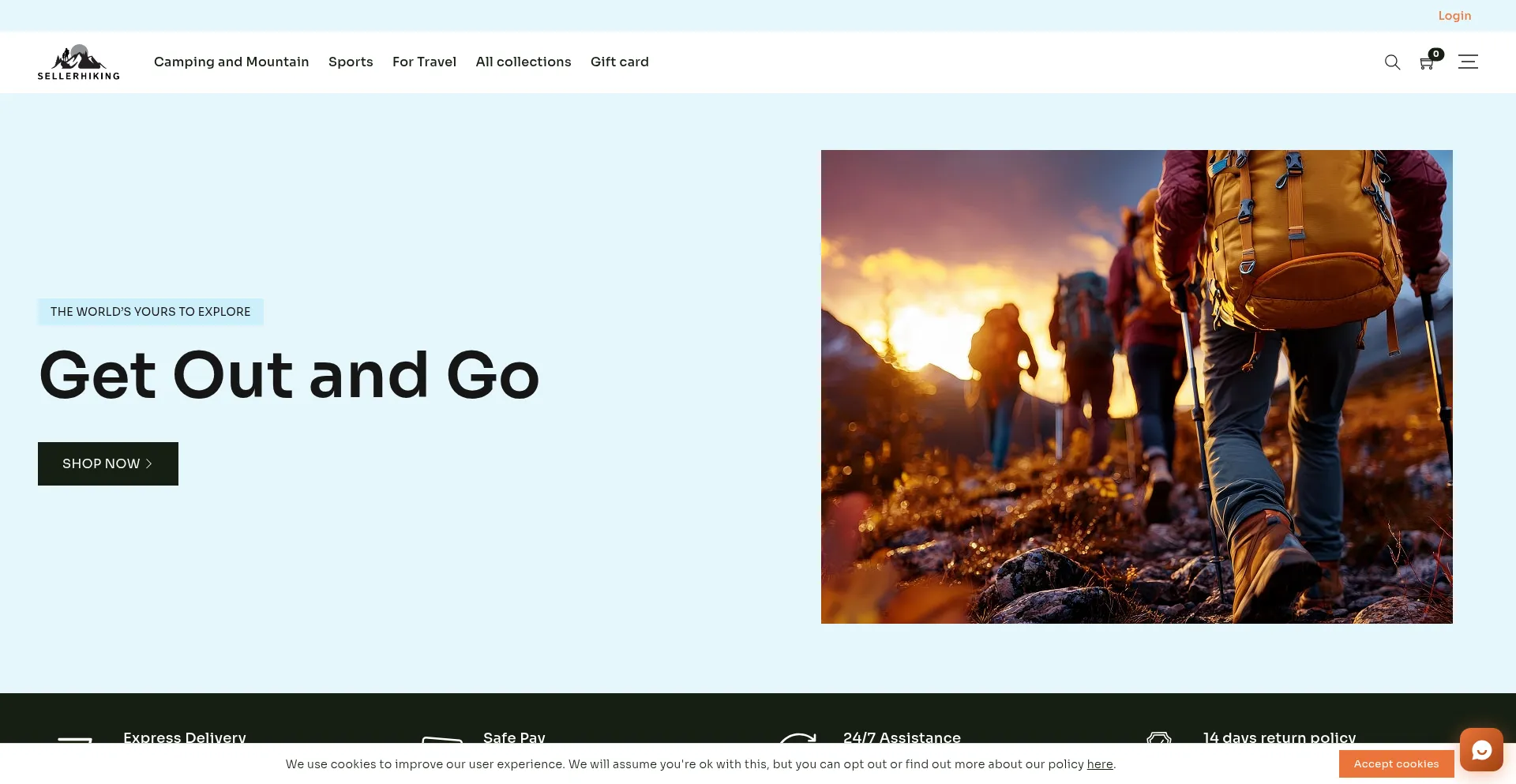 Analysis indicates that sellerhiking.com operates as an e-commerce platform facilitating online transactions for goods or services. The website implements shopping cart functionality, payment processing systems, and product catalog features typical of commercial retail operations.