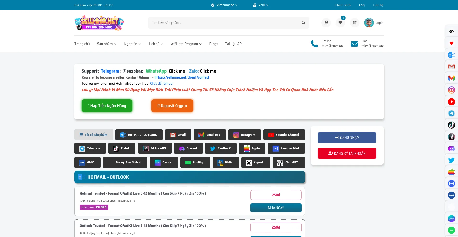 Hệ thống bán nguyên liệu MMO tự động, uy tín, giá rẻ...