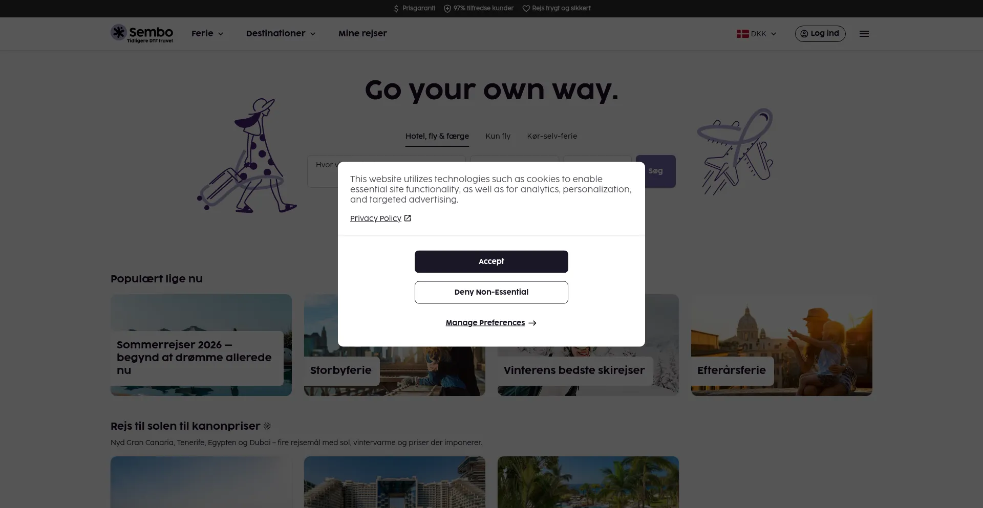 Find og book prisvenlige ferier, hoteller og flyrejser på ét sted. Sembo tilbyder fleksibel booking, pålidelig support og gode tilbud til enhver rejsende.