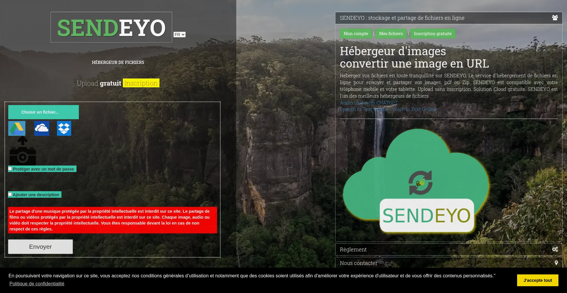 SENDEYO.Transfert d'images et fichiers PDF, ZIP, RAR, Audio, Vidéos... Hébergeur d'images et de photos gratuit, Hébergeur de fichiers CLOUD