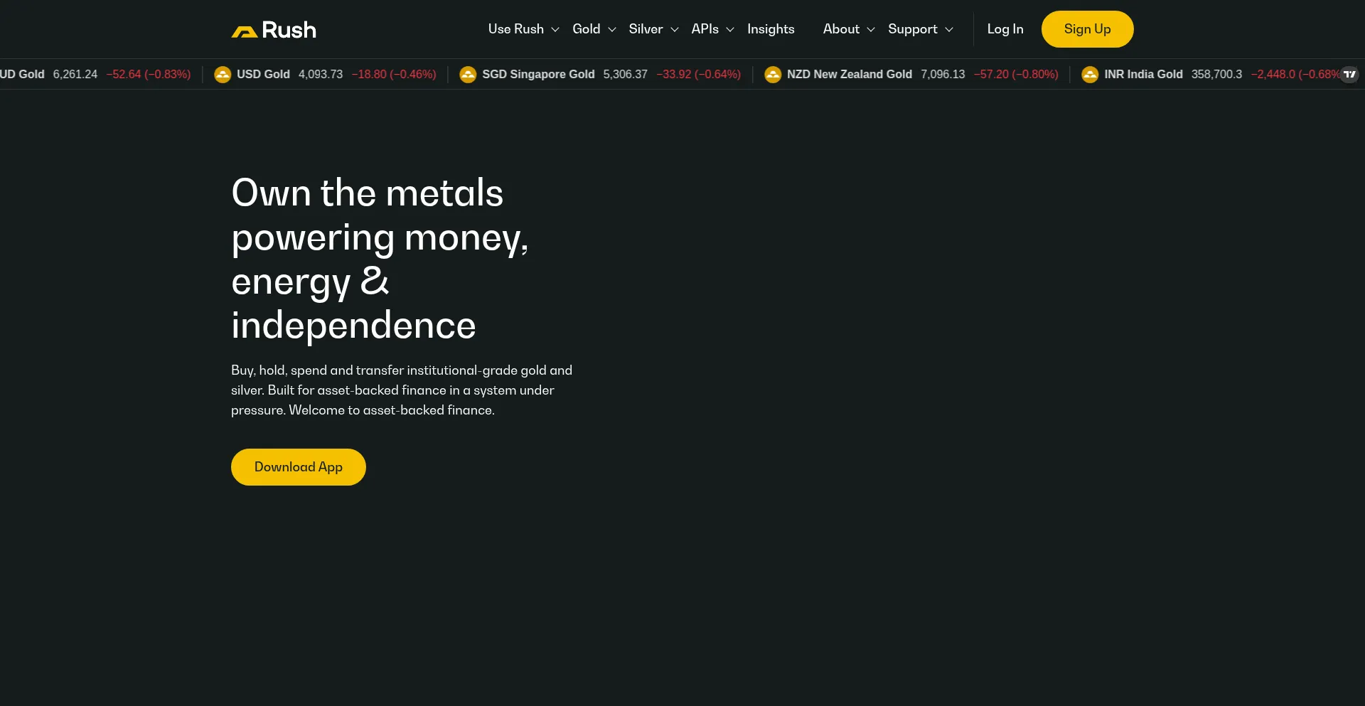 Own the metals powering money and energy. Buy, hold and spend gold and silver 24/7 with Rush.
