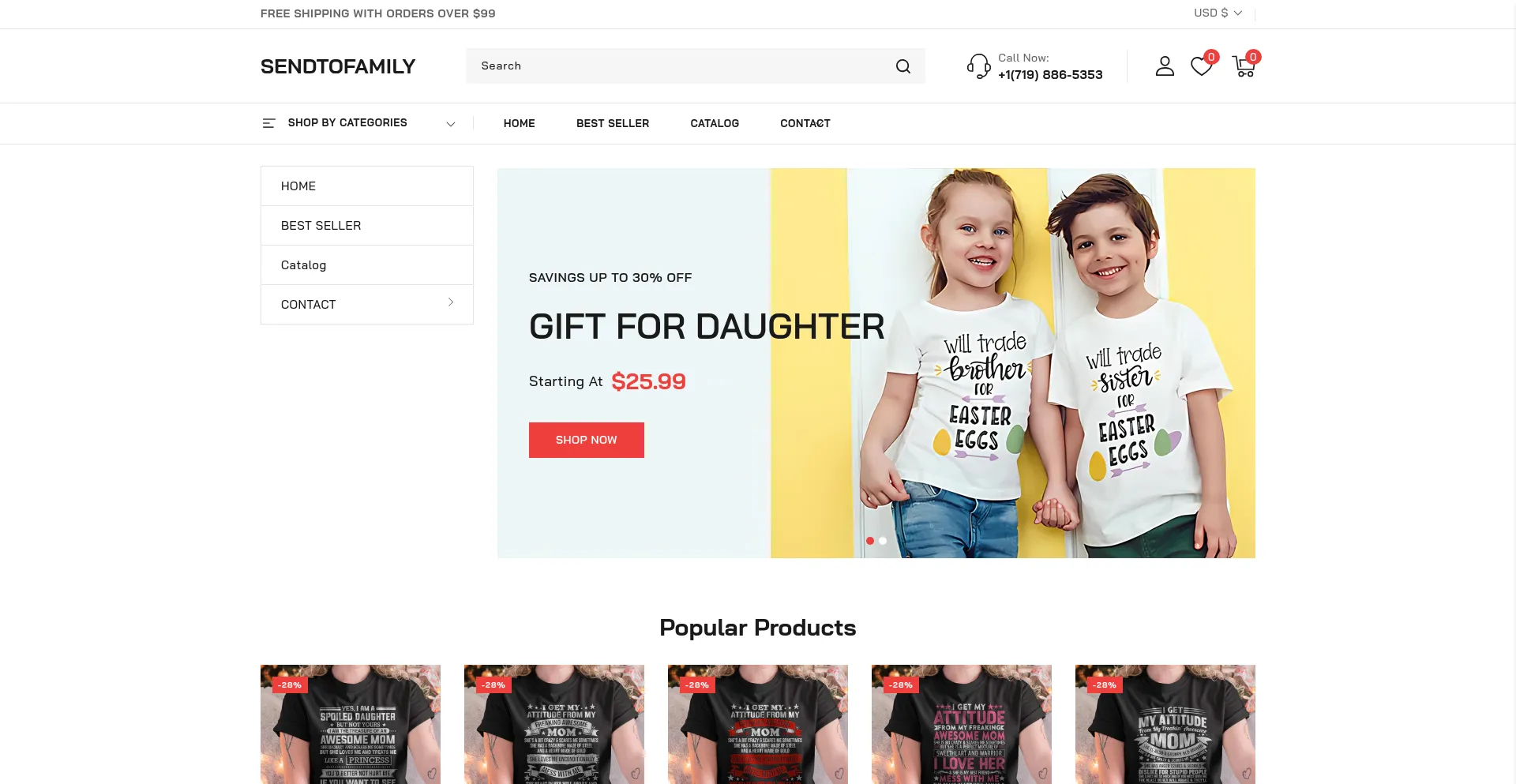 The sendtofamily.com website utilizes free e-commerce platform solutions, which may indicate cost-conscious operations but could also suggest limitations in security features, customer support, or advanced functionality compared to enterprise-grade solutions.
