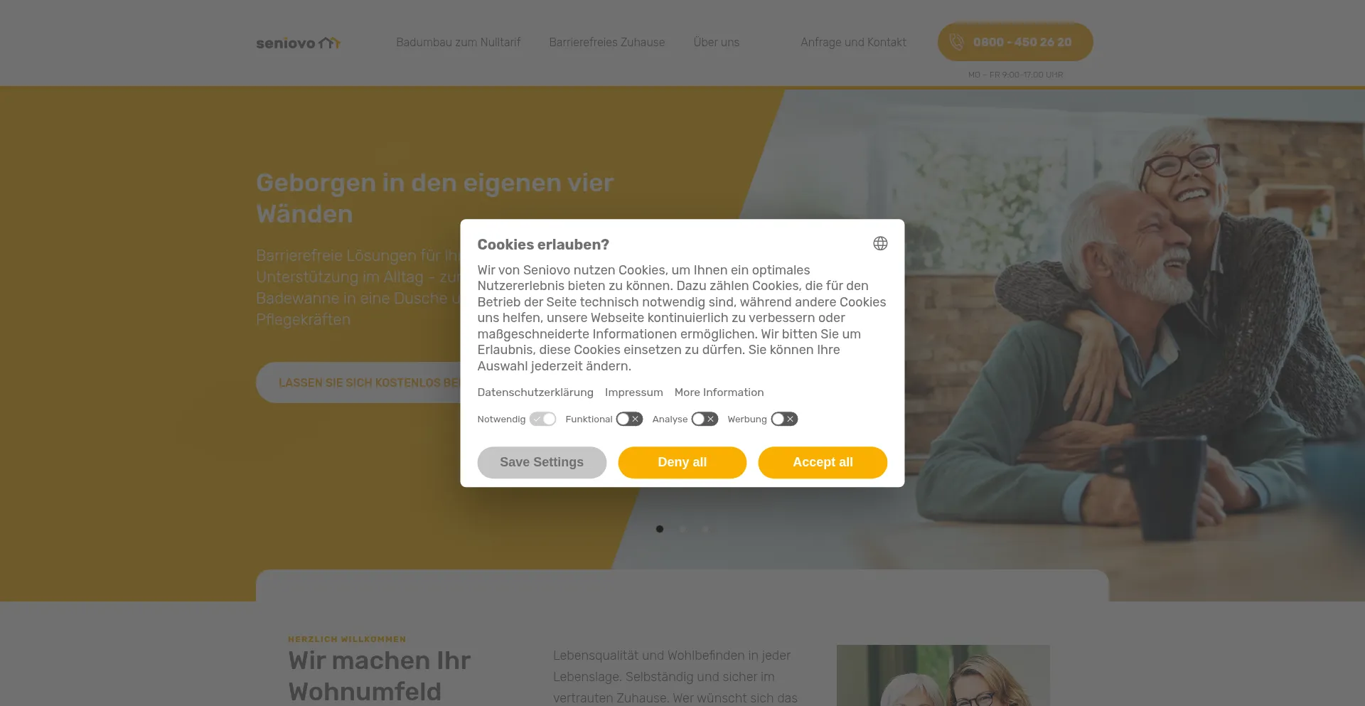 Mit Seniovo erhalten Sie maßgeschneiderte Lösungen für ein barrierefreies Zuhause. Entdecken Sie jetzt, wie wir Ihnen helfen können.