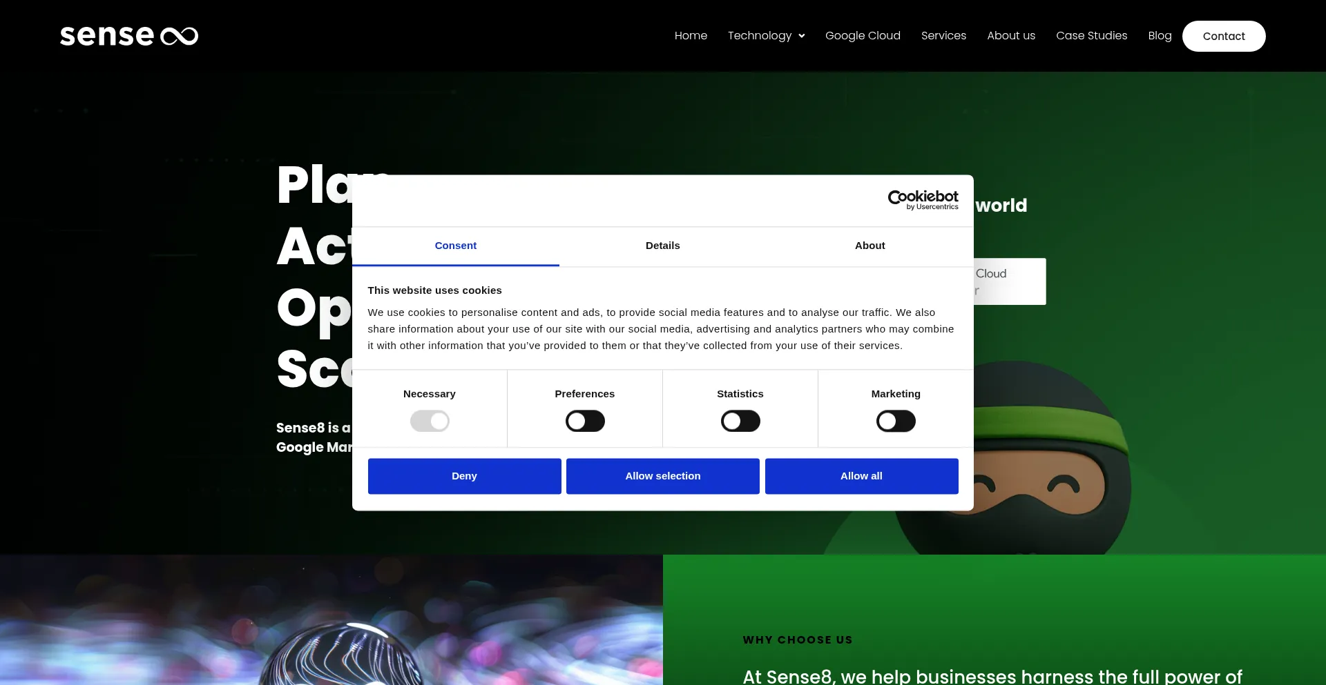 The website implements cookie consent mechanisms in compliance with privacy regulations such as GDPR or CCPA. This demonstrates that sense8.eu adheres to data protection standards and provides users with control over personal data collection practices.