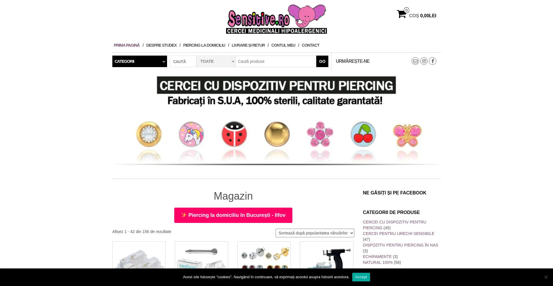 În cardul acestui magazin online puteți găsi cercei Studex®, hipoalergenici din titan și oțel chirurgical precum și sisteme de perforat urechea.