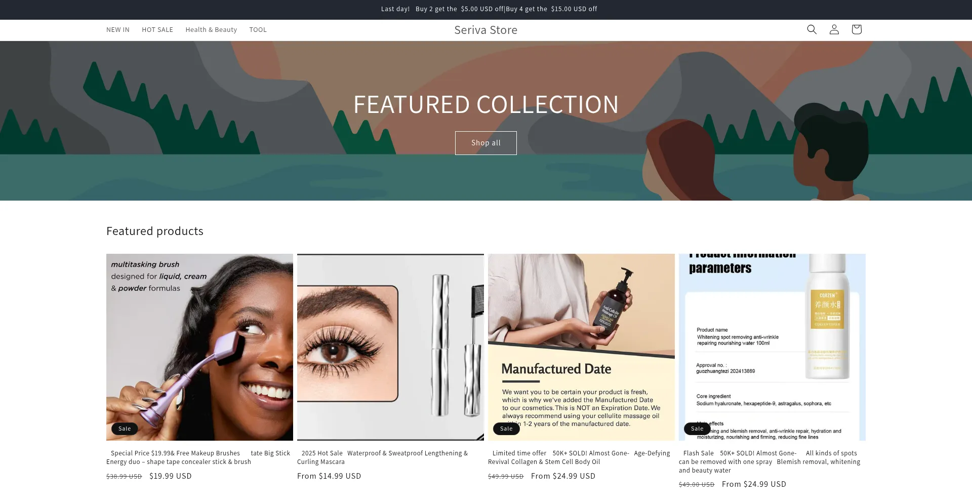 The seriva.store website utilizes free e-commerce platform solutions, which may indicate cost-conscious operations but could also suggest limitations in security features, customer support, or advanced functionality compared to enterprise-grade solutions.