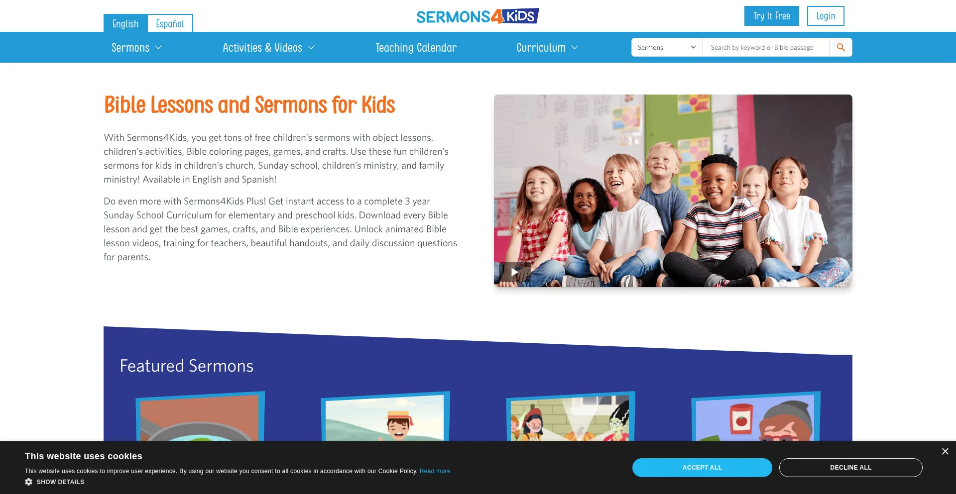 The website implements cookie consent mechanisms in compliance with privacy regulations such as GDPR or CCPA. This demonstrates that sermons4kids.com adheres to data protection standards and provides users with control over personal data collection practices.