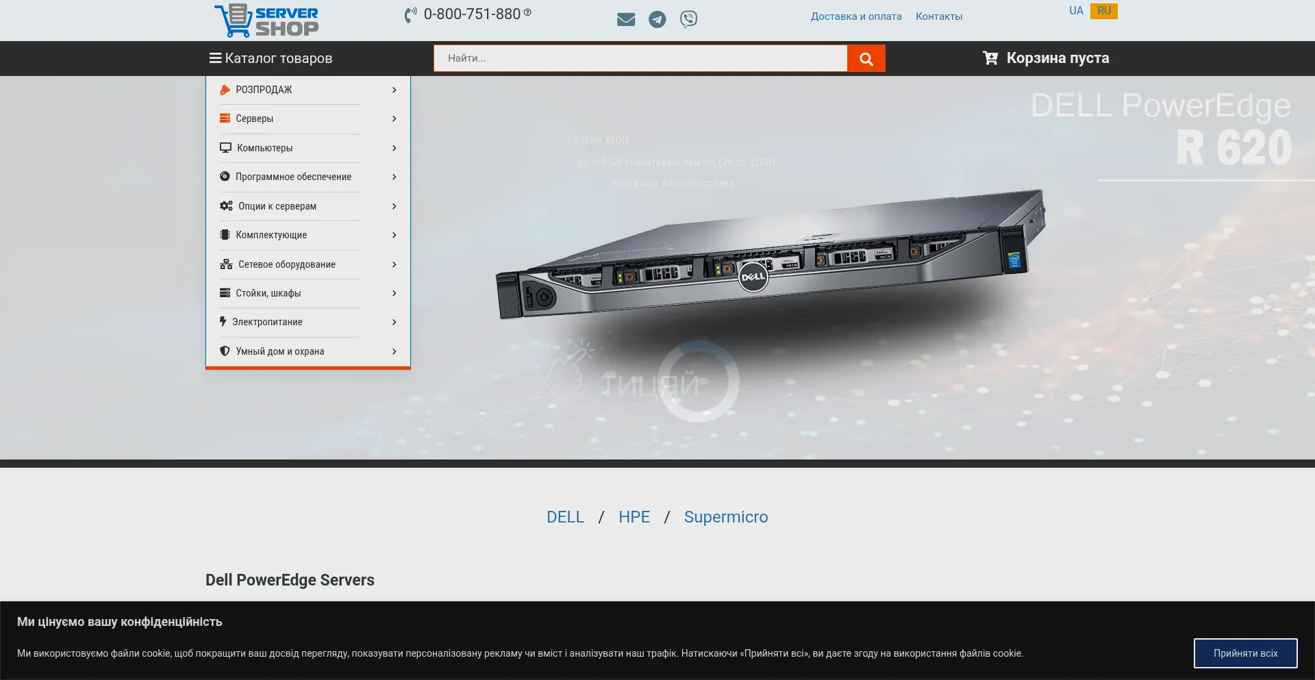 The website implements cookie consent mechanisms in compliance with privacy regulations such as GDPR or CCPA. This demonstrates that server-shop.ua adheres to data protection standards and provides users with control over personal data collection practices.