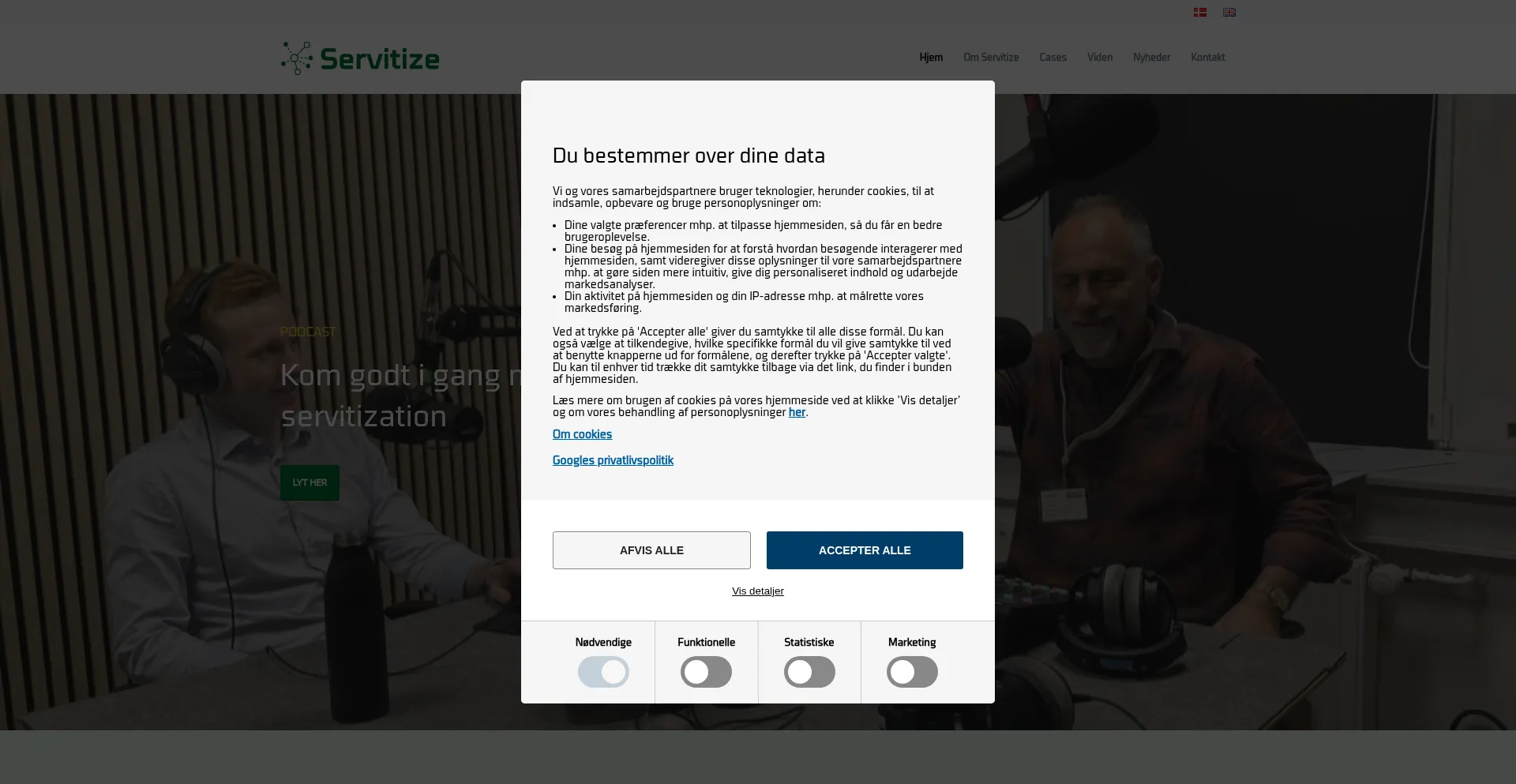 The website implements cookie consent mechanisms in compliance with privacy regulations such as GDPR or CCPA. This demonstrates that servitize.dk adheres to data protection standards and provides users with control over personal data collection practices.