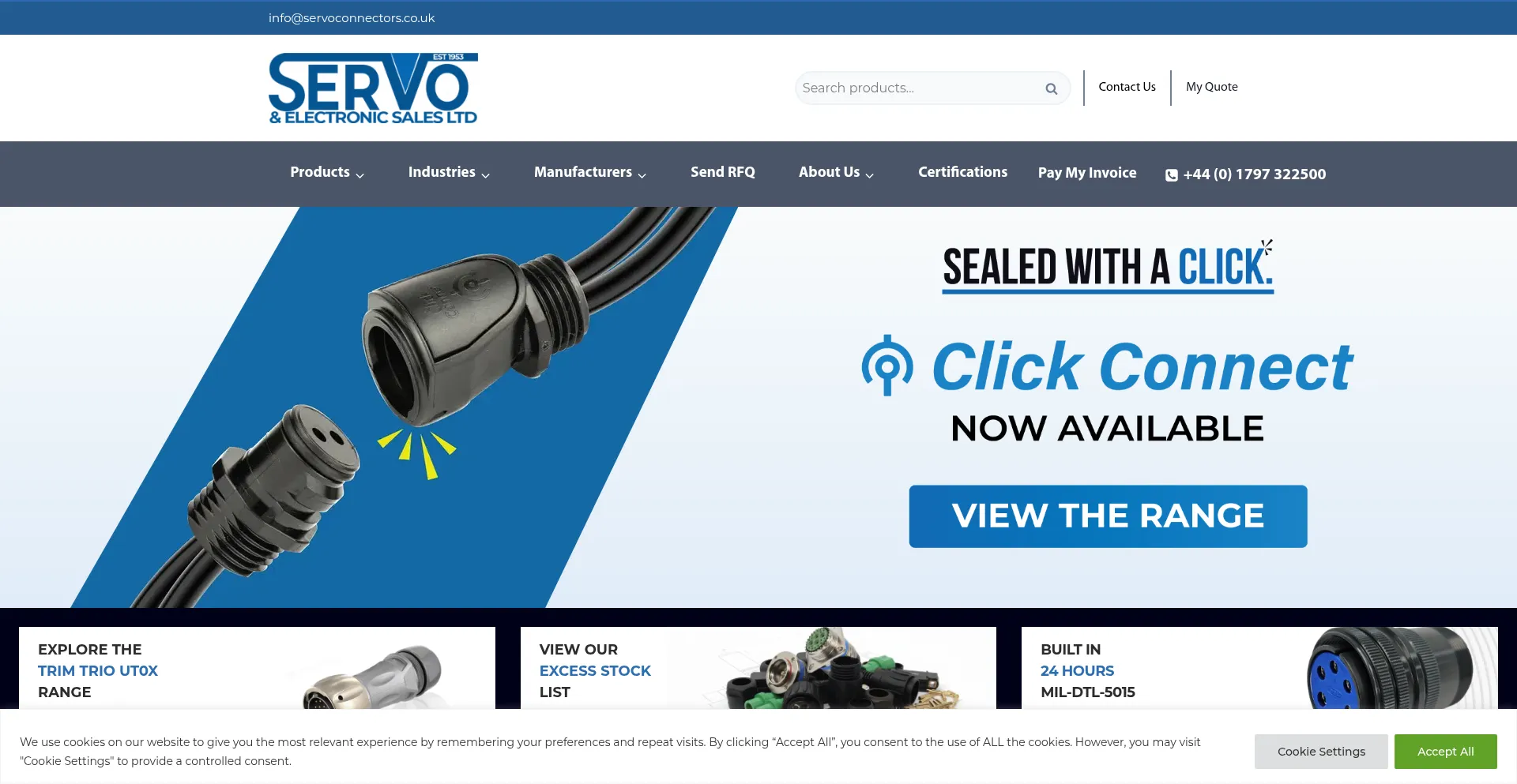 The website implements cookie consent mechanisms in compliance with privacy regulations such as GDPR or CCPA. This demonstrates that servoconnectors.co.uk adheres to data protection standards and provides users with control over personal data collection practices.