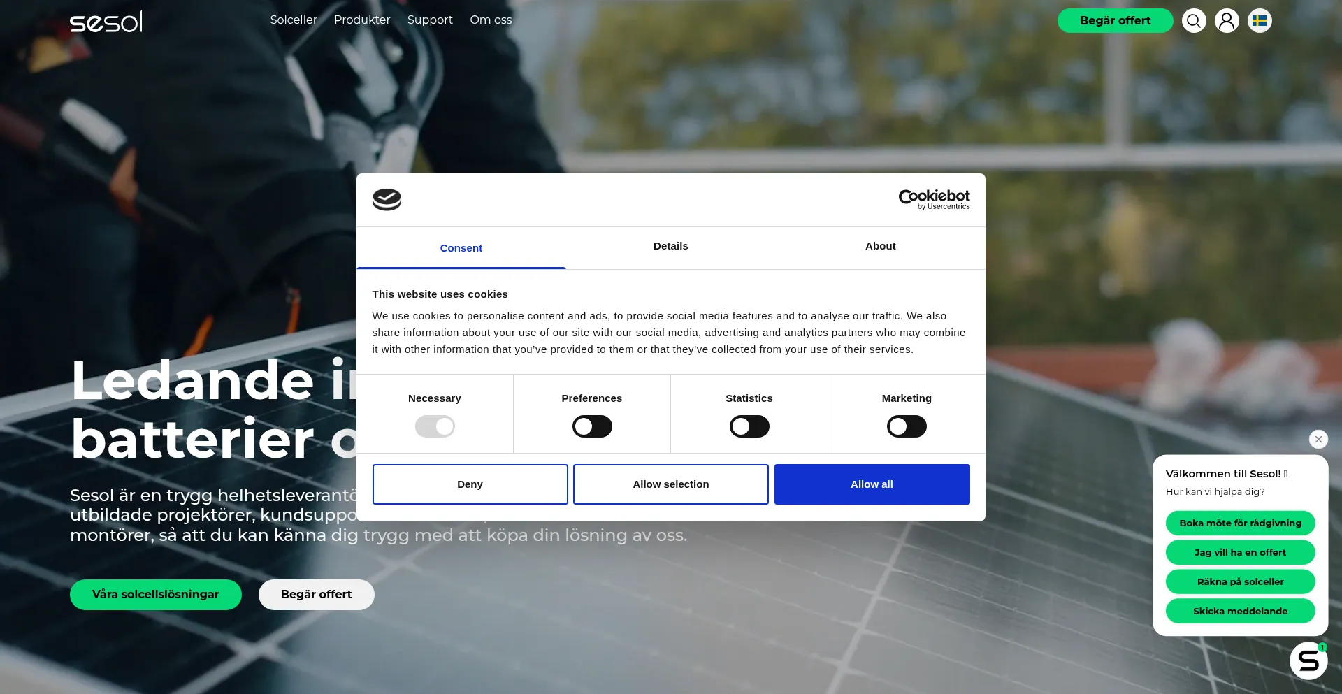 The website implements cookie consent mechanisms in compliance with privacy regulations such as GDPR or CCPA. This demonstrates that sesol.se adheres to data protection standards and provides users with control over personal data collection practices.