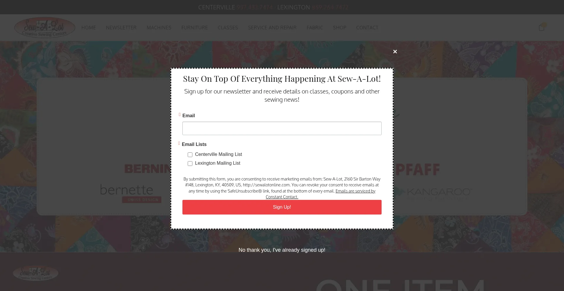 Sew-A-Lot Creative Sewing Centers. Machines, Classes, Fabric & Service. Centerville & Dayton, OH. Lexington KY. A TOP 5 authorized Pfaff and Husqvarna Viking sewing machine deal...