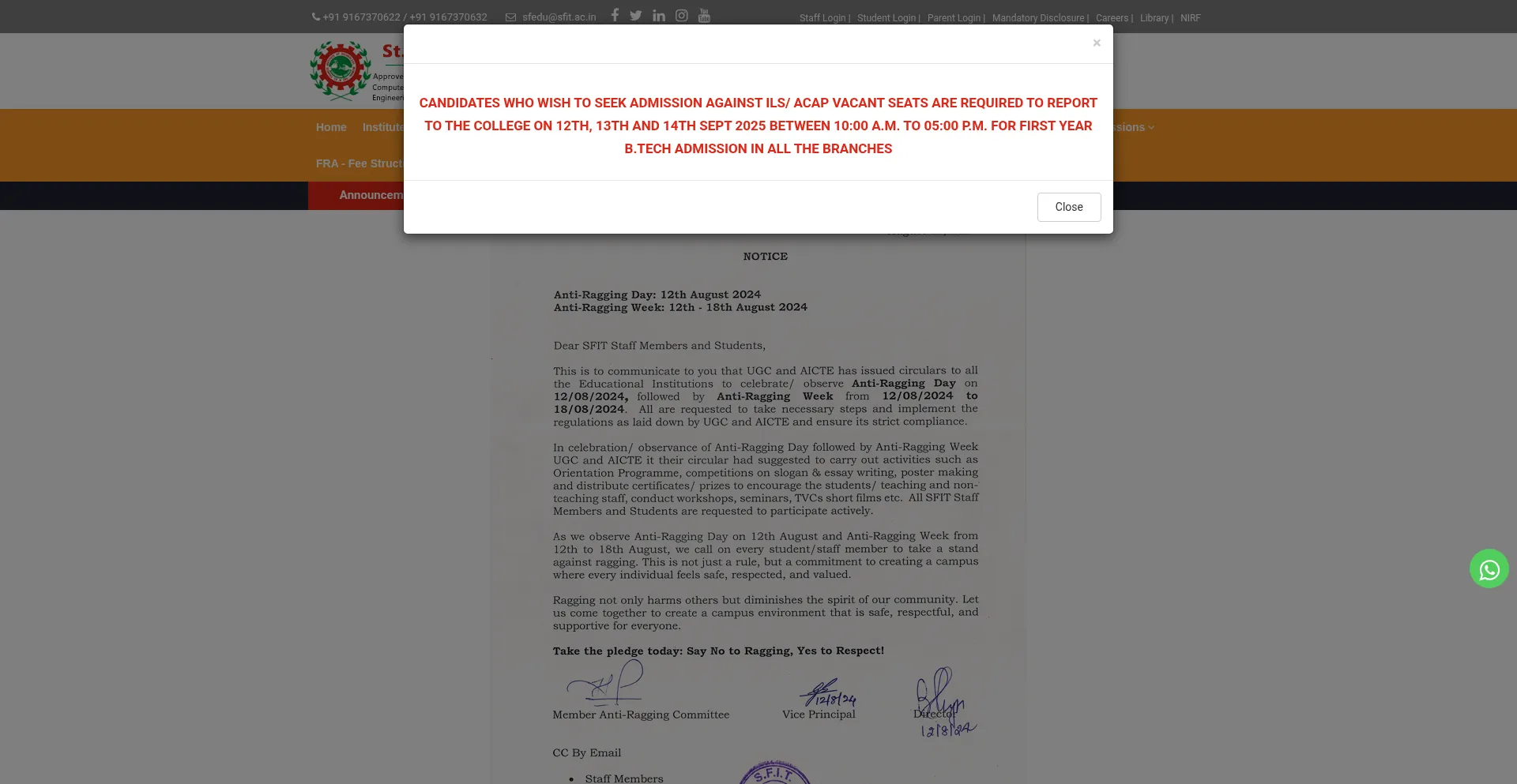 The sfit.ac.in website implements data collection forms requesting personal information including names, email addresses, phone numbers, or other sensitive details. Users should verify the legitimacy of it and review privacy policies before submitting personal data.
