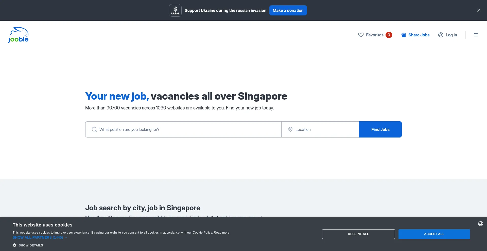 The website implements cookie consent mechanisms in compliance with privacy regulations such as GDPR or CCPA. This demonstrates that sg.jooble.org adheres to data protection standards and provides users with control over personal data collection practices.
