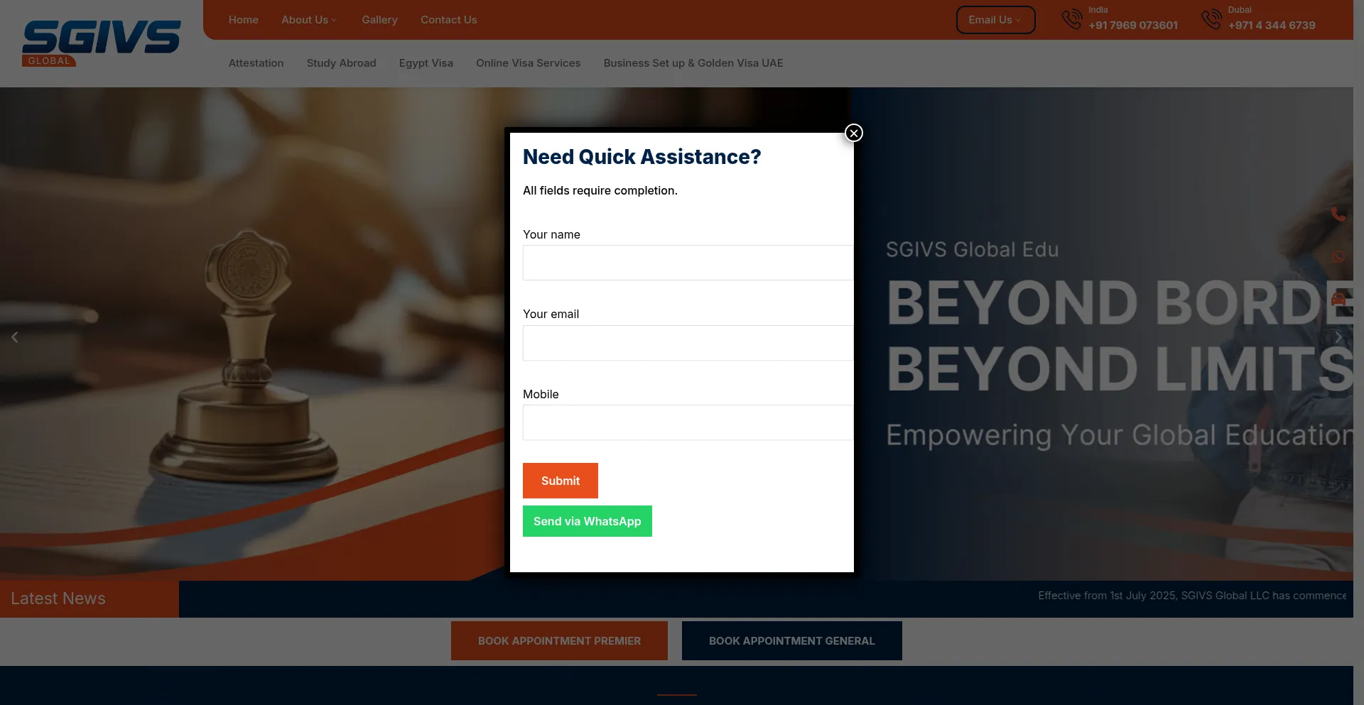 Visa Service Registration Form Wordpress Platform Social Media Links Long Term SSL Certificate