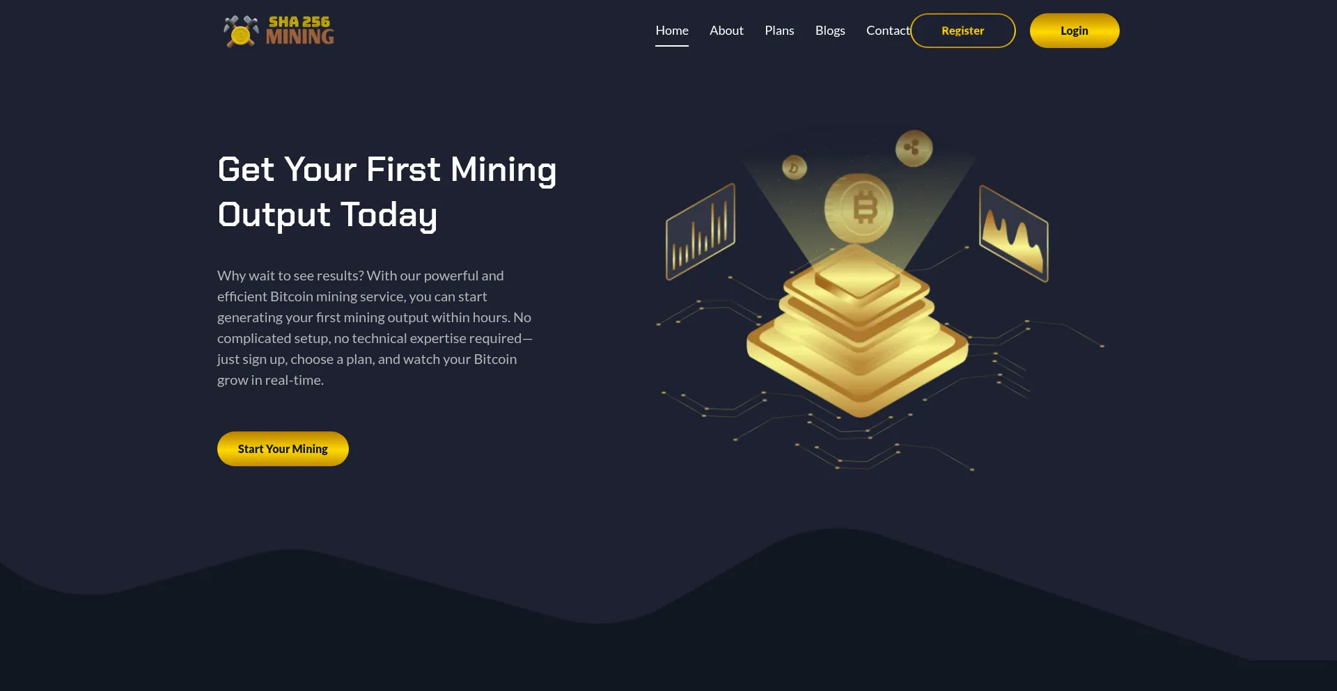 The sha256mining.com probably offers cloud mining services or cryptocurrency mining investments. Some platforms provide legitimate mining rental services, while others may use fake mining dashboards to display virtual earnings that cannot be withdrawn.