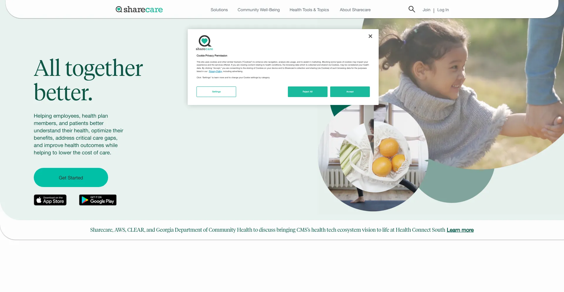 The website implements cookie consent mechanisms in compliance with privacy regulations such as GDPR or CCPA. This demonstrates that sharecare.com adheres to data protection standards and provides users with control over personal data collection practices.