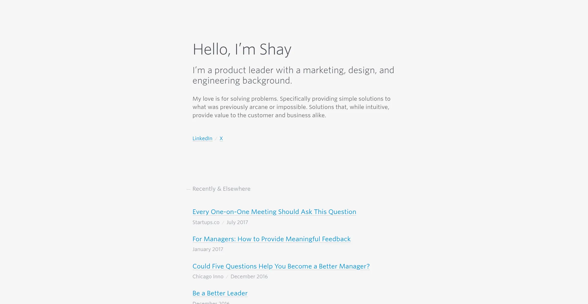 Hello, I’m Shay Howe. I’m a product leader with a marketing, design, and engineering background.