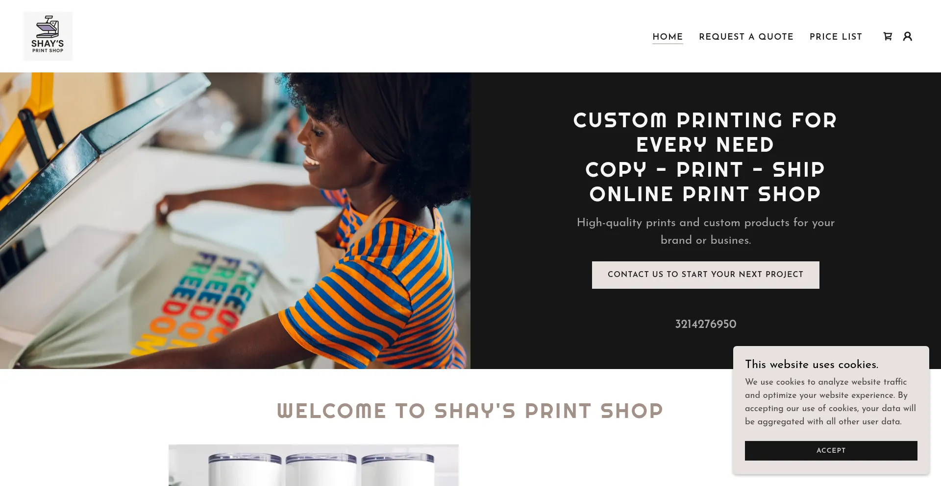 The website implements cookie consent mechanisms in compliance with privacy regulations such as GDPR or CCPA. This demonstrates that shaysprintshop.com adheres to data protection standards and provides users with control over personal data collection practices.