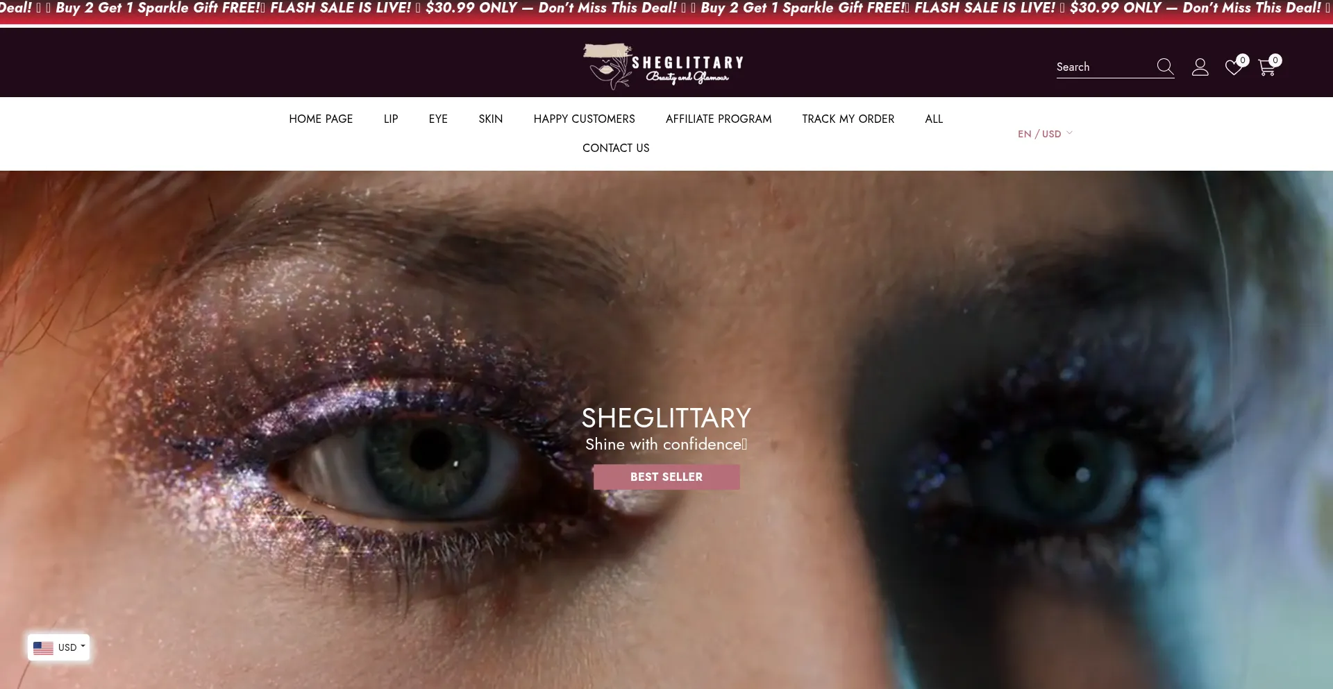 Analysis indicates that sheglittary.com operates as an e-commerce platform facilitating online transactions for goods or services. The website implements shopping cart functionality, payment processing systems, and product catalog features typical of commercial retail operations.