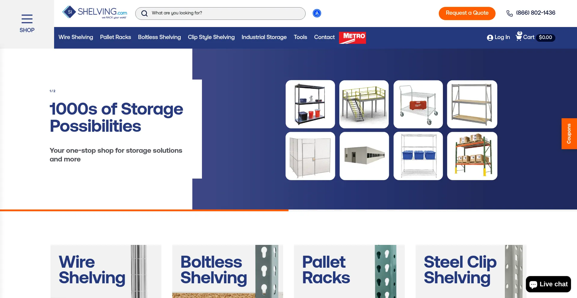 Analysis indicates that shelving.com operates as an e-commerce platform facilitating online transactions for goods or services. The website implements shopping cart functionality, payment processing systems, and product catalog features typical of commercial retail operations.