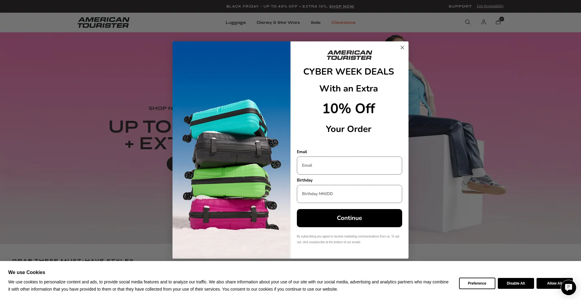 The website implements cookie consent mechanisms in compliance with privacy regulations such as GDPR or CCPA. This demonstrates that shop.americantourister.com adheres to data protection standards and provides users with control over personal data collection practices.