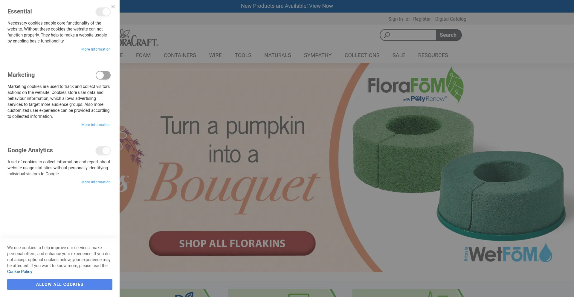 The website implements cookie consent mechanisms in compliance with privacy regulations such as GDPR or CCPA. This demonstrates that shop.floracraft.com adheres to data protection standards and provides users with control over personal data collection practices.