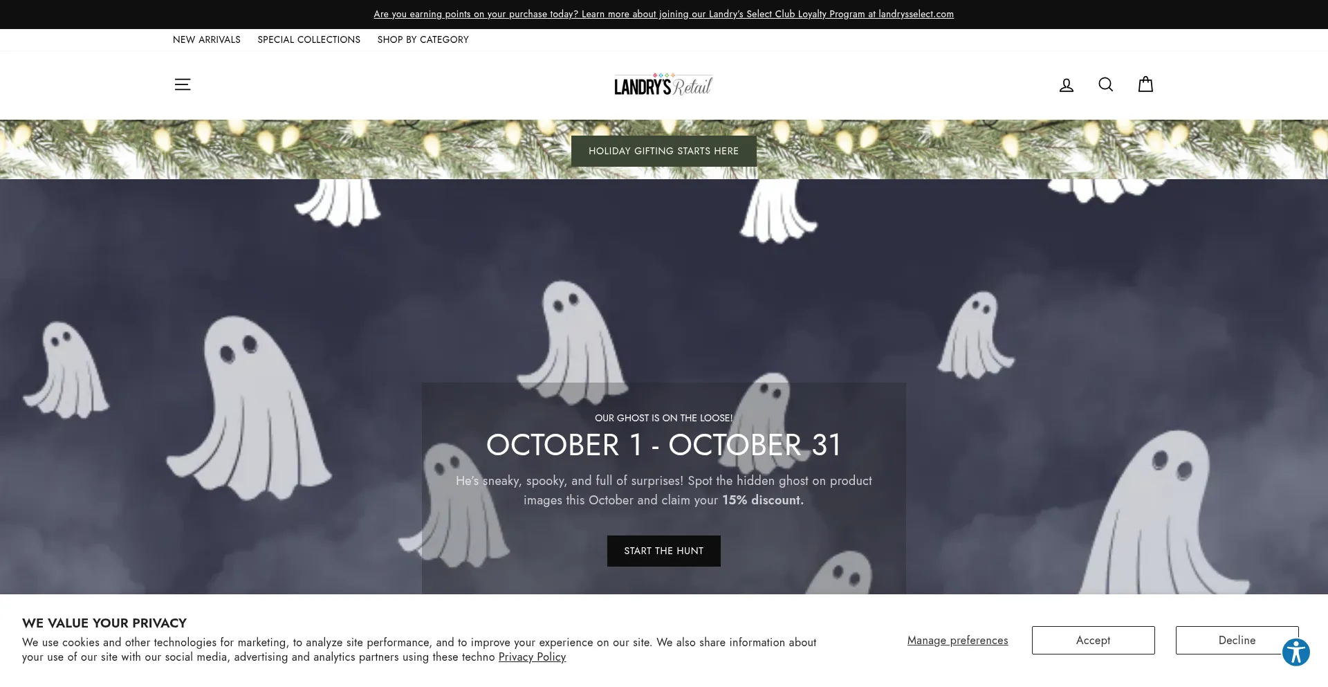 The website implements cookie consent mechanisms in compliance with privacy regulations such as GDPR or CCPA. This demonstrates that shop.landrysinc.com adheres to data protection standards and provides users with control over personal data collection practices.