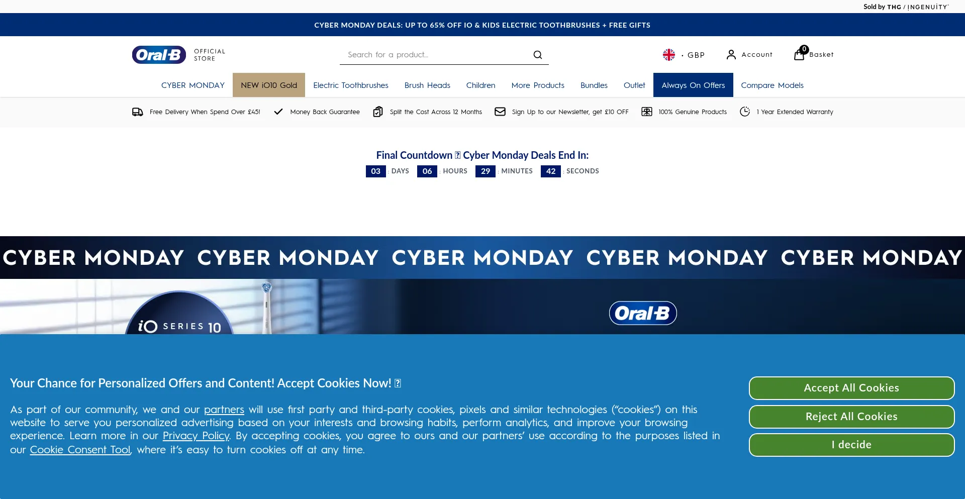 The website implements cookie consent mechanisms in compliance with privacy regulations such as GDPR or CCPA. This demonstrates that shop.oralb.co.uk adheres to data protection standards and provides users with control over personal data collection practices.