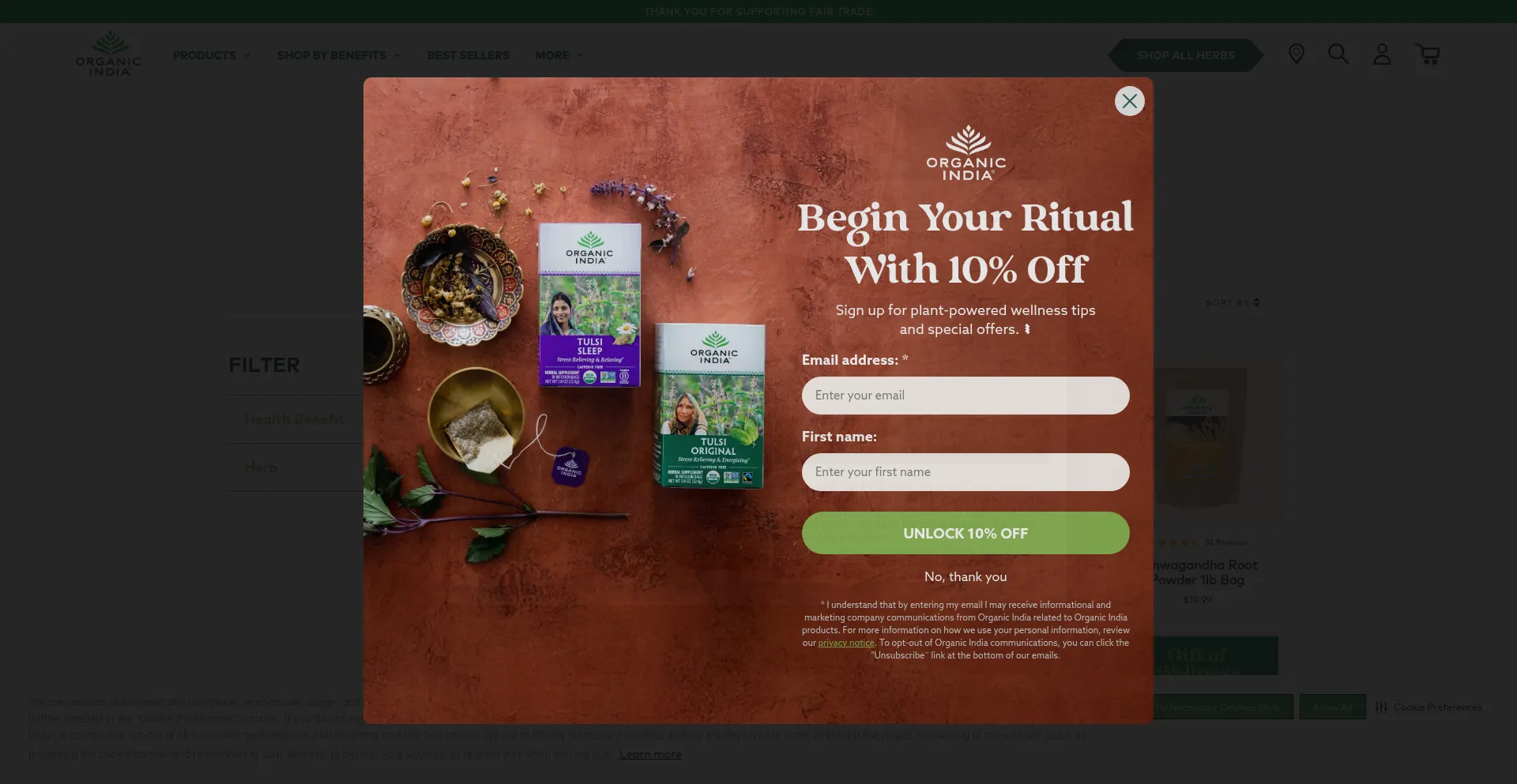 The website implements cookie consent mechanisms in compliance with privacy regulations such as GDPR or CCPA. This demonstrates that shop.organicindiausa.com adheres to data protection standards and provides users with control over personal data collection practices.
