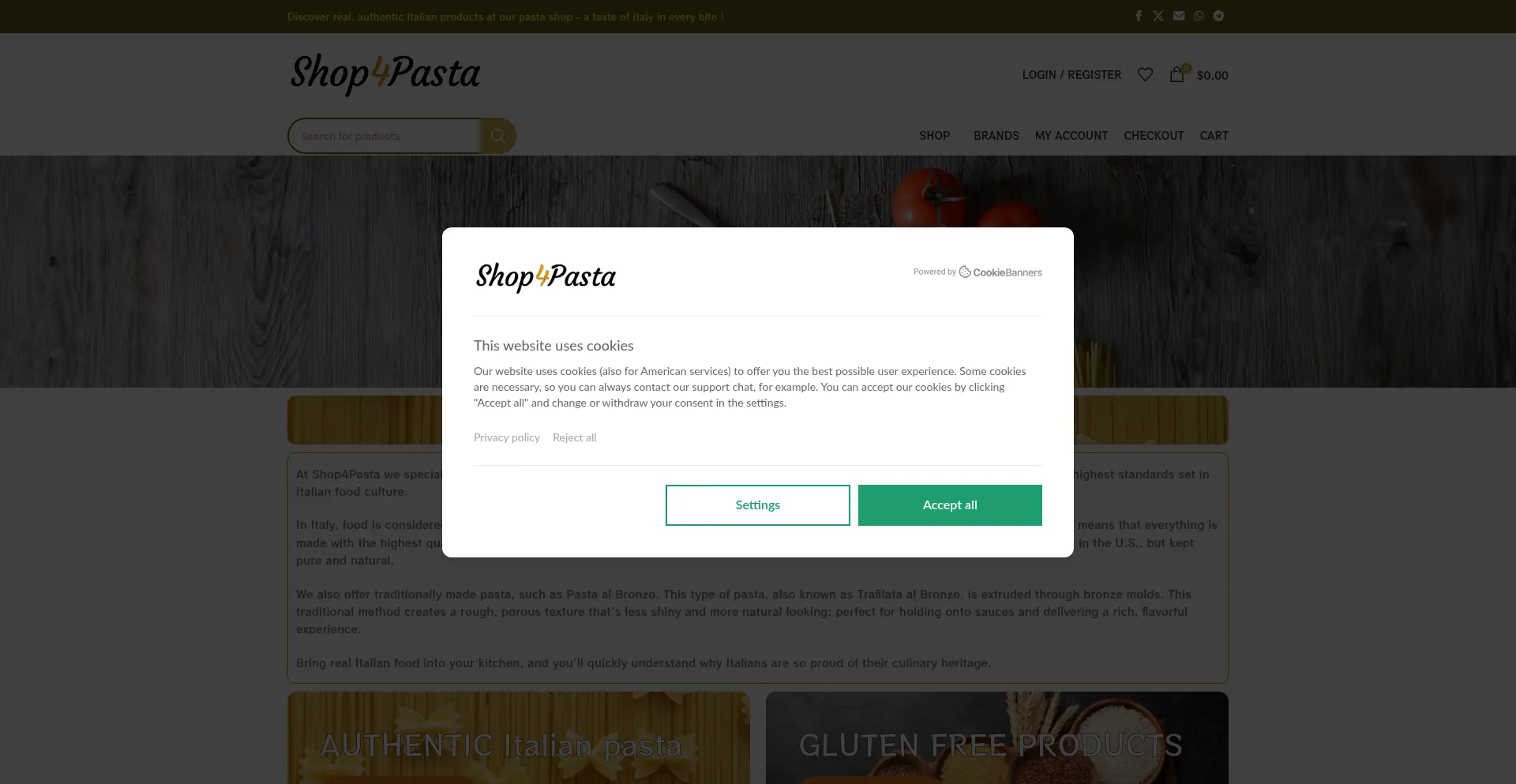 Our analyzer determines that website shop4pasta.com is using WordPress CMS. WordPress is the most popular content management system, powering over 43% of websites globally.