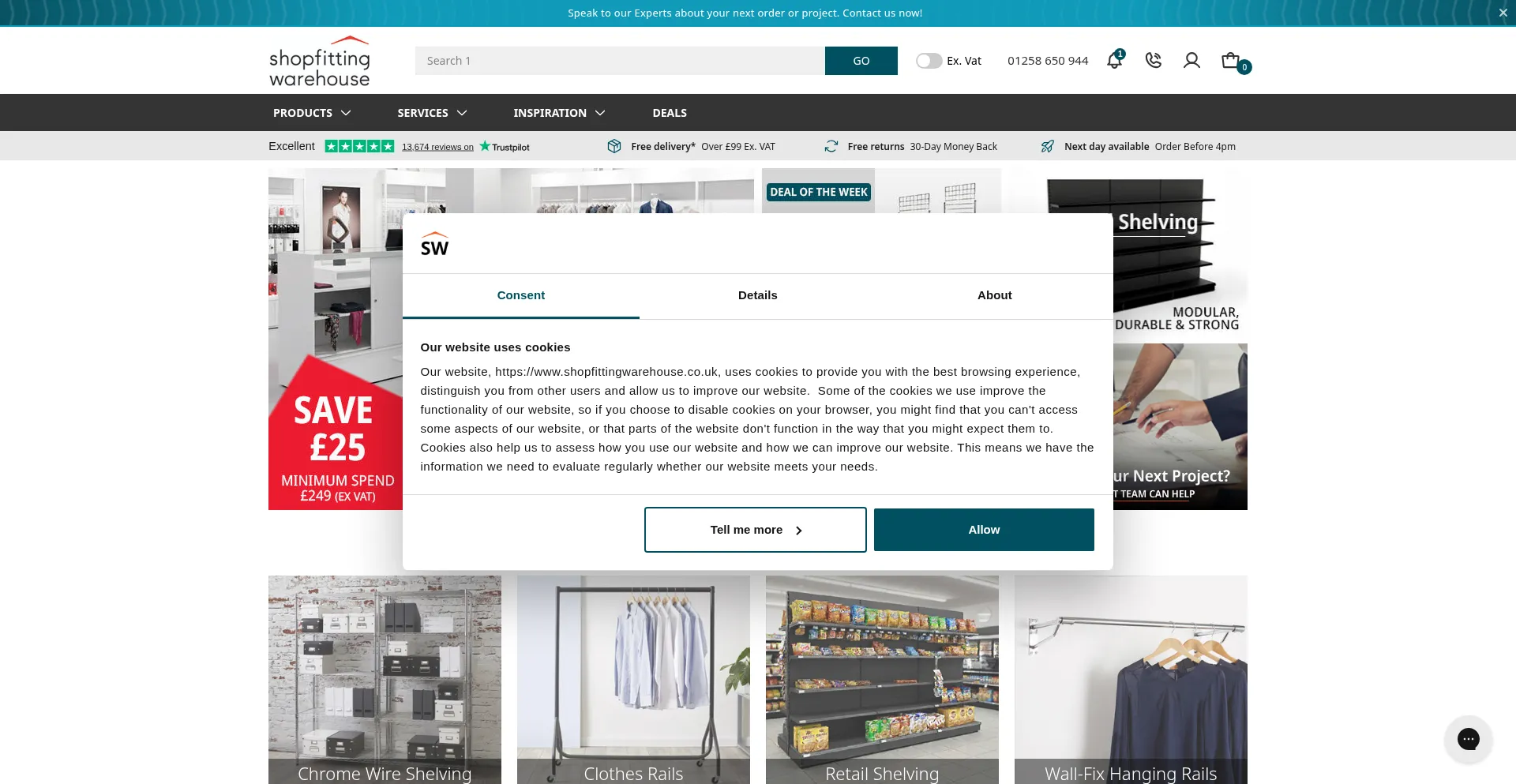The website implements cookie consent mechanisms in compliance with privacy regulations such as GDPR or CCPA. This demonstrates that shopfittingwarehouse.co.uk adheres to data protection standards and provides users with control over personal data collection practices.