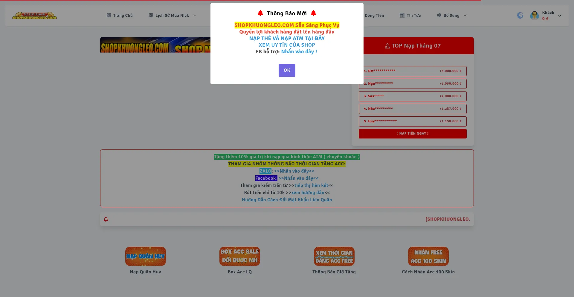 Shopkhuongleo.Com là hệ thống shop acc liên quân & acc free fire tự động, uy tín, thông tin liên hệ rõ ràng, đầy đủ. Mỗi chuyên mục game...