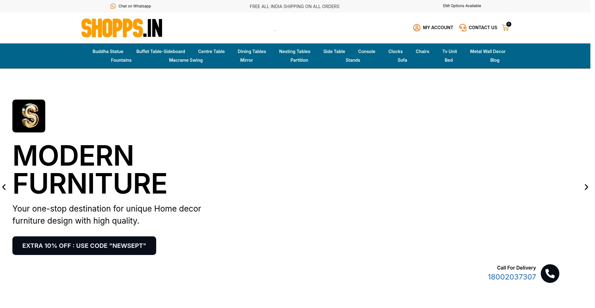 Shopps.in offers curated metal-based home decor across India. Specializing in SS frame tables, custom wall decor, clocks, and mirrors since 2011.