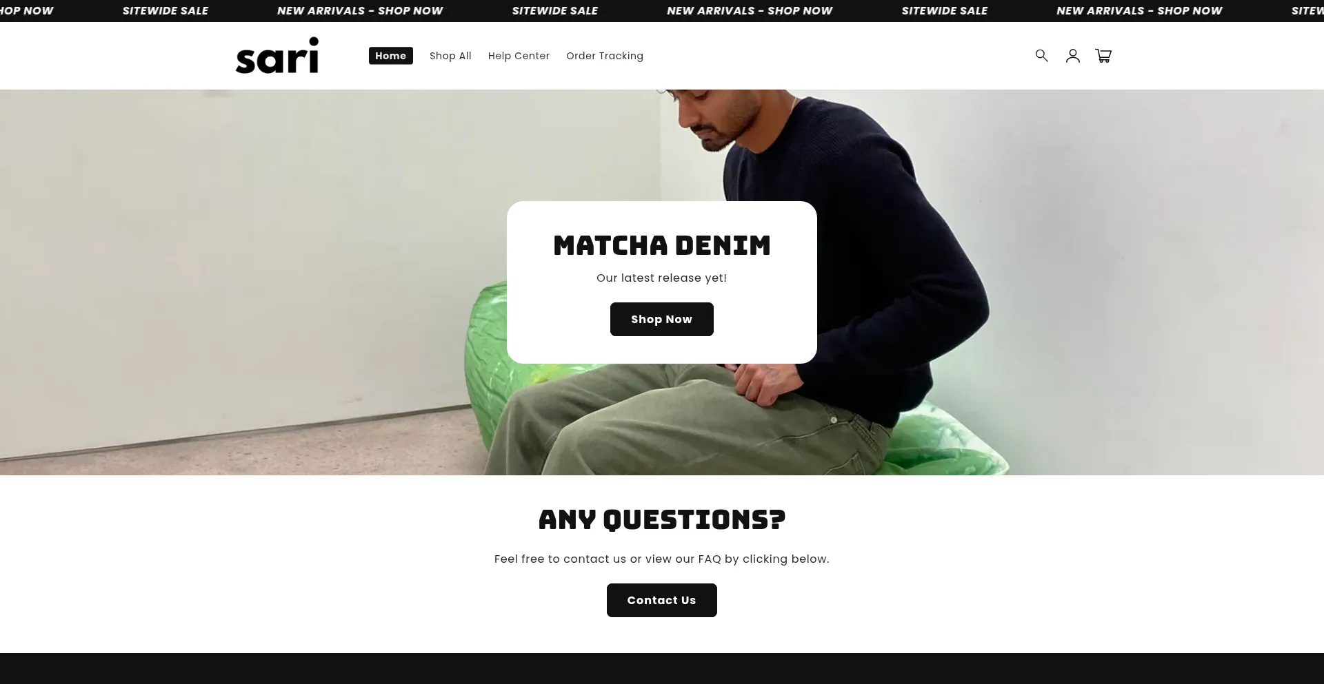 Welcome to Sari. Discover shoes, hoodies, zip-ups, jeans, and more in a variety of materials and textures.