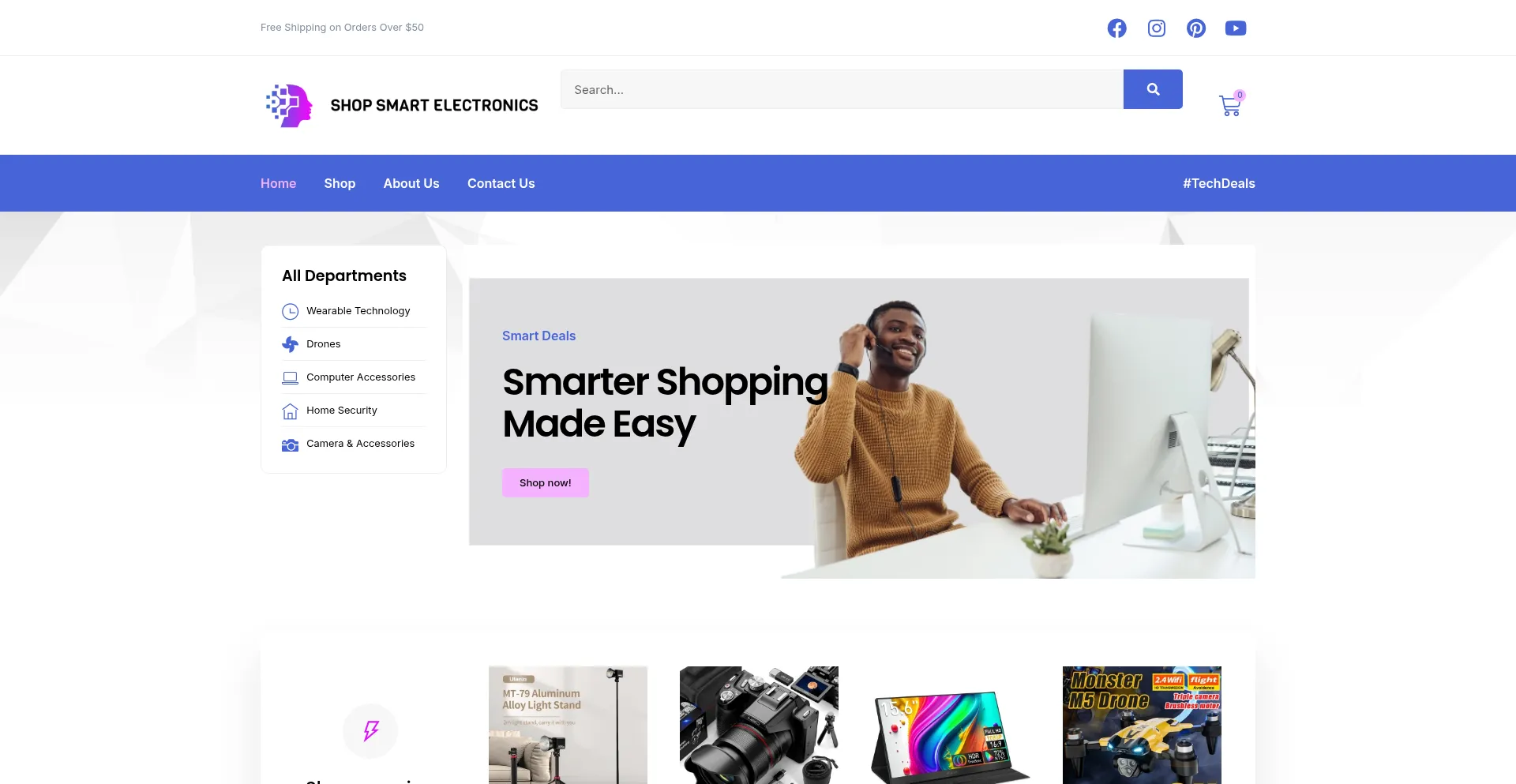 The shopsmartelectronics.com website employs search engine optimization (SEO) techniques to improve its visibility and ranking in search engine results pages (SERPs).