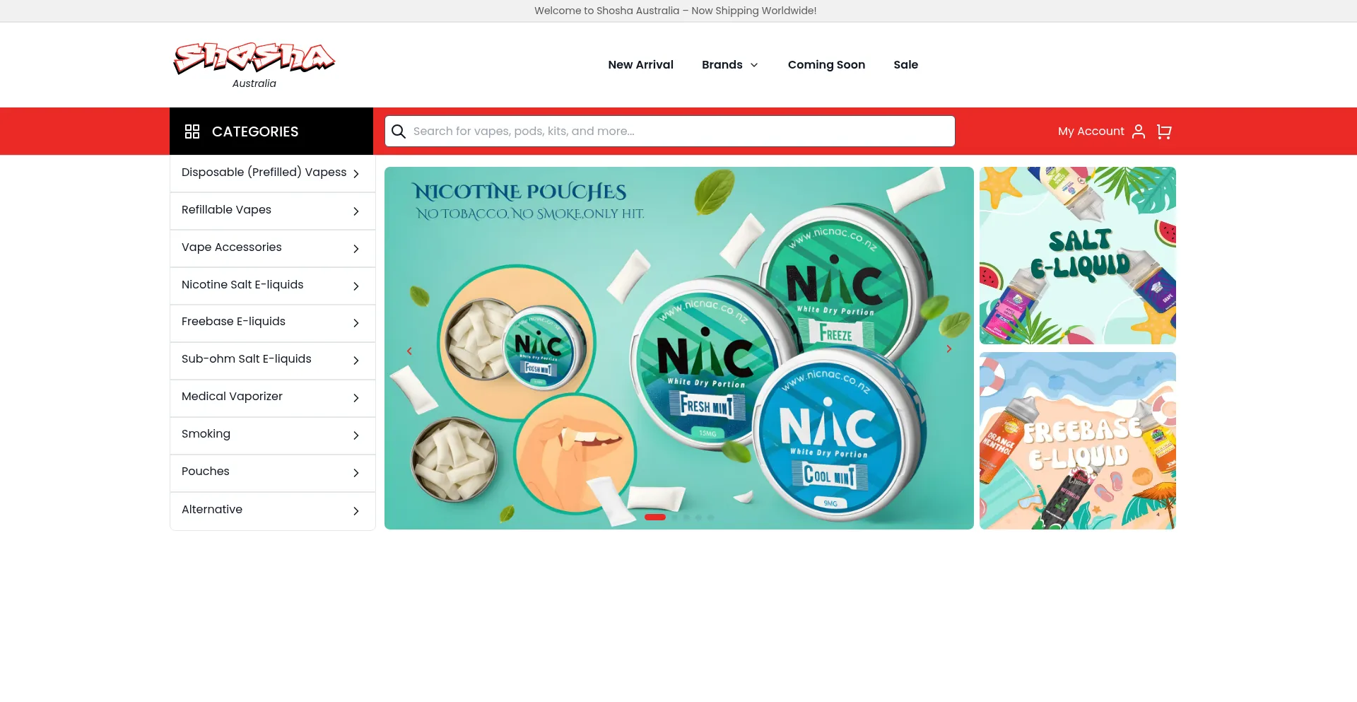 Vape Shop Paradise in Australia: Find the finest vapes, disposable vape, Vape Kits, Nicotine Vape Juice, E-liquids, & more at Shosha, the largest vape store